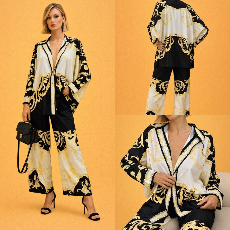 Откройте для себя мир утончённой роскоши с Noir Baroque — эффектным ансамблем для женщины, которая привлекает внимание без лишних усилий. Выполненный из струящейся, шелковистой ткани, этот комплект с изысканным барочным орнаментом в оттенках чёрного, айвори и золота создаёт безупречно элегантный силуэт.