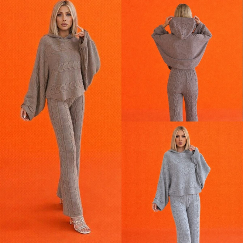 Этот роскошный комплект состоит из свободного пончо-свитера с деликатным рельефным узором и идеально скроенных брюк с высокой посадкой, визуально удлиняющих силуэт. Мягкие линии и продуманный крой создают ощущение легкости и уверенности, подчеркивая естественную грацию движения.