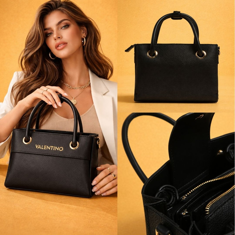 Архитектурный структурированный силуэт придаёт сумке выразительную форму, а фирменный логотип Valentino и фурнитура золотого оттенка создают эффектный контраст, добавляя образу благородное сияние и уверенную роскошь.