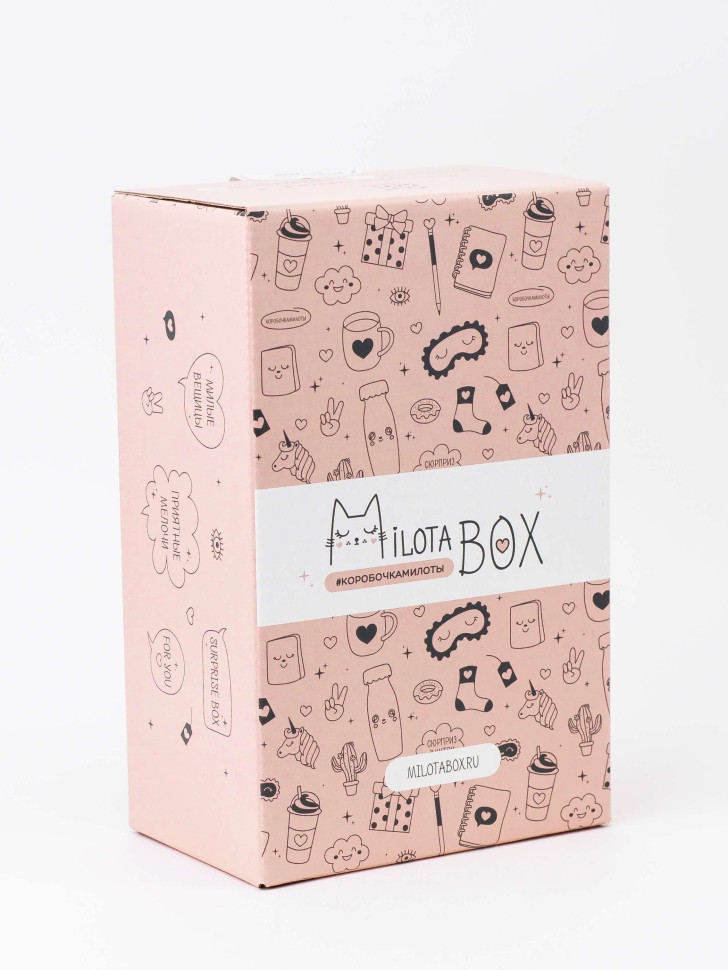 Каждая коробочка милоты наполнена необычными вещицами, которыми будет приятно пользоваться в повседневной жизни: милая канцелярия, уютные товары для дома, стильные аксессуары, предметы для здорового образа жизни и приятные мелочи. Внутри Milota BOX находится до 8 сюрпризов, упакованных в стилизованную подарочную бумагу тишью.