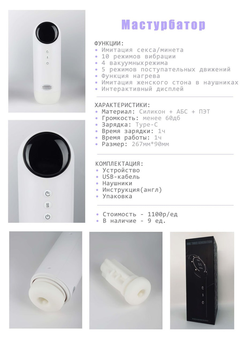 Мастурбатор с имитацией секса и минета. Также в комплекте наушники, в которых можно услышать имитацию женского оргазма.