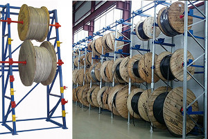 стеллаж для кабельных барабаном может использоваться в качестве отдающей/подающей стойки для отмотки/перемотки кабеля, троса;