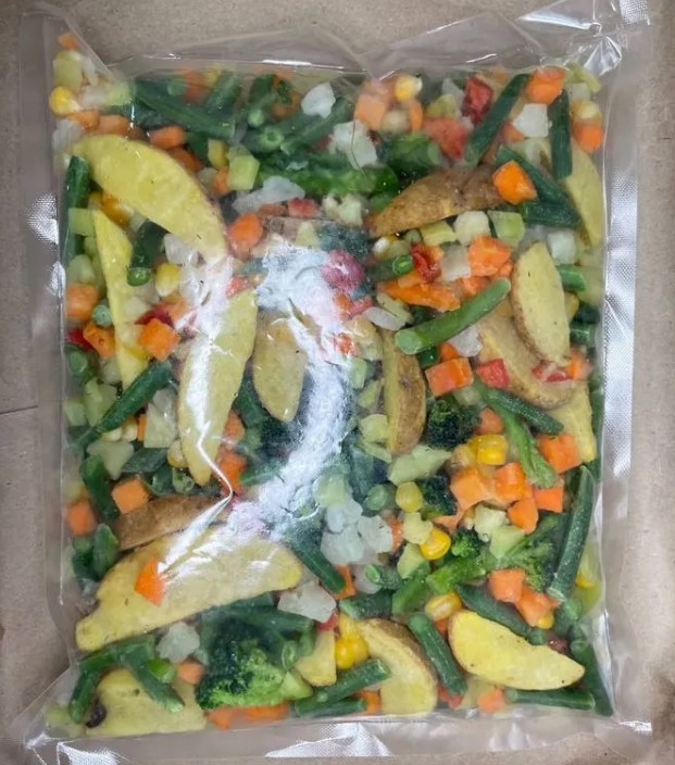 Состав: Картофель дольки, брокколи, фасоль стручковая, лук, морковь, кукуруза зерно.