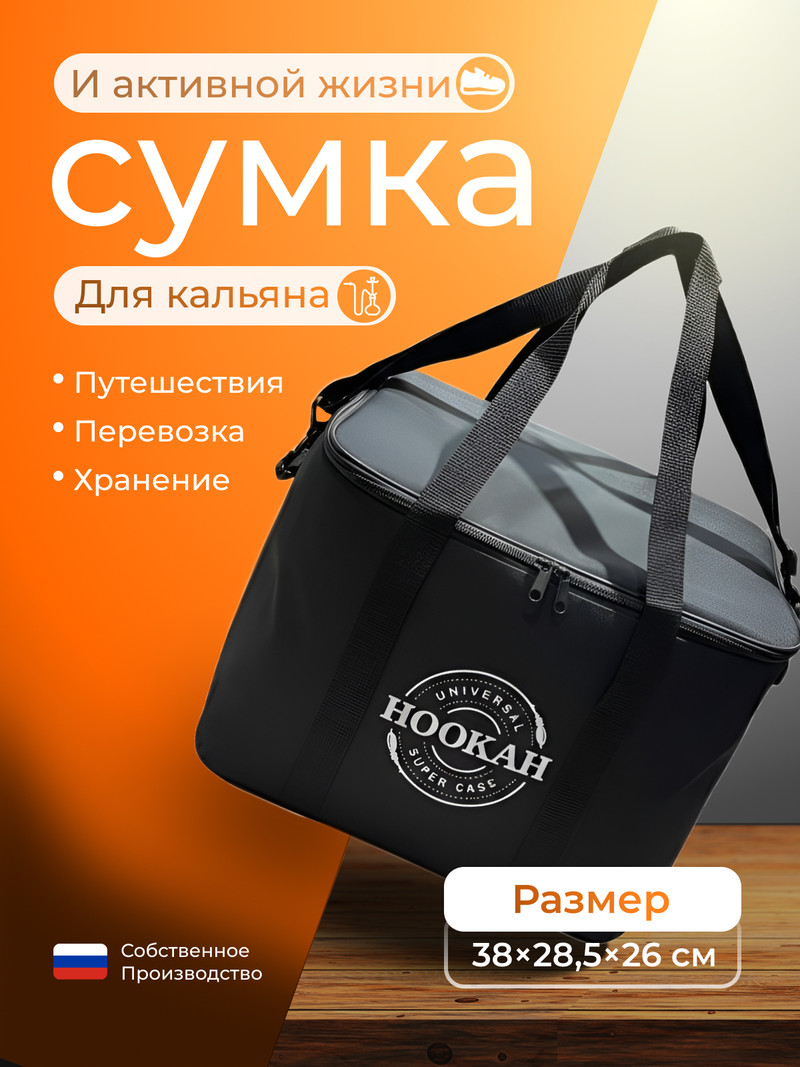 Большая и вместительная сумка-кейс для кальяна сочетает защиту, удобство и универсальность — надежное решение для хранения и транспортировки кальяна, а также для использования в дороге и повседневной жизни.