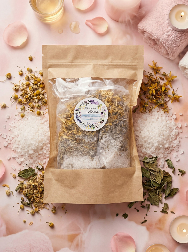 Состав: морская соль (Крым) + сухие травы (без отдушек и красителей)