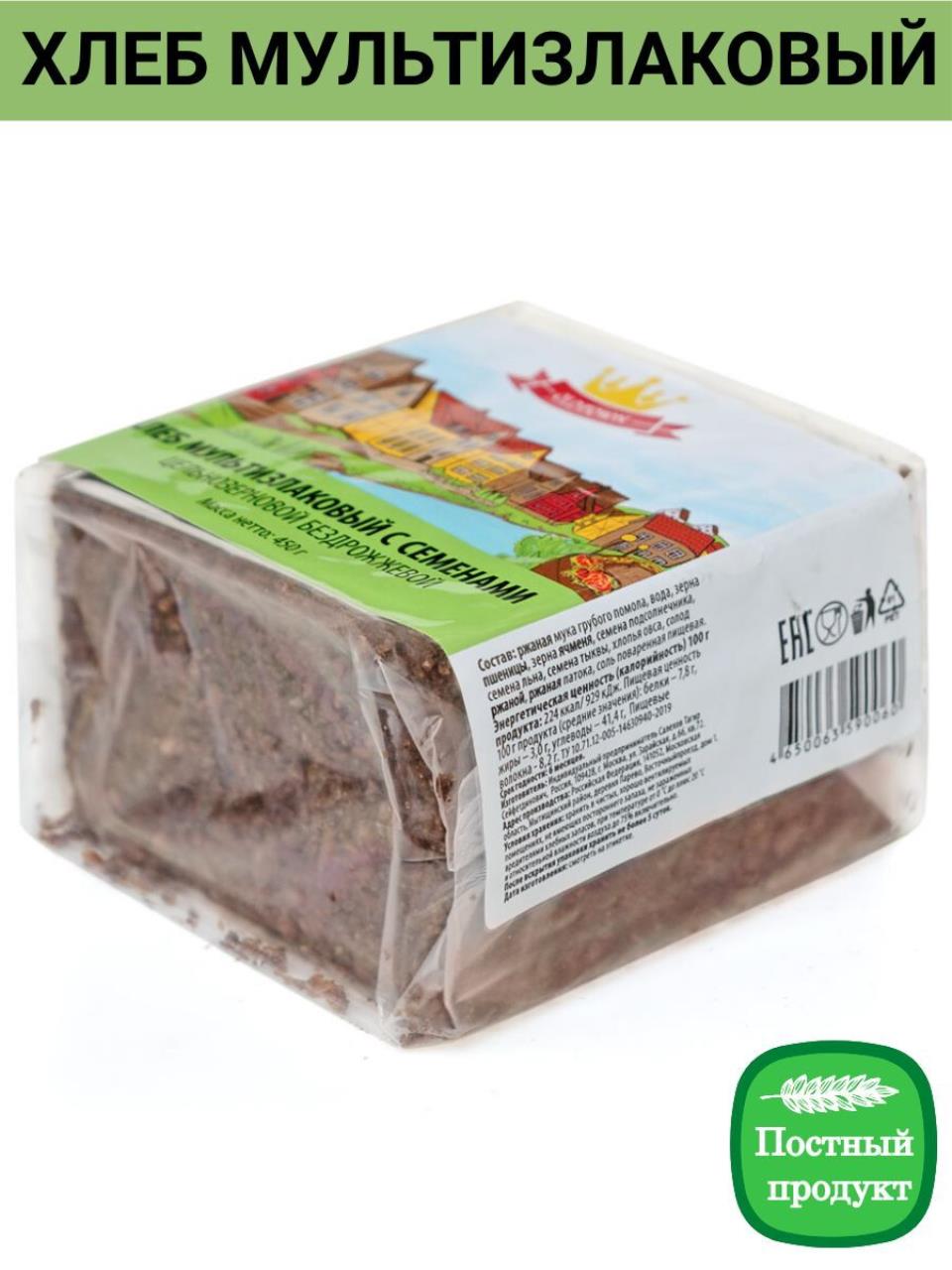 Хлеб из ржаной муки грубого помола с добавлением различных семян. Изготвлен без дрожжей. Помогает улучшить пищеварение. Низкокалорийный. Богат клетчаткой и витаминами. Благодаря технологии производства этот хлеб имеет длительный срок хранения. После вскрытия хранить в холодильнике в плотно закрытом пакете.