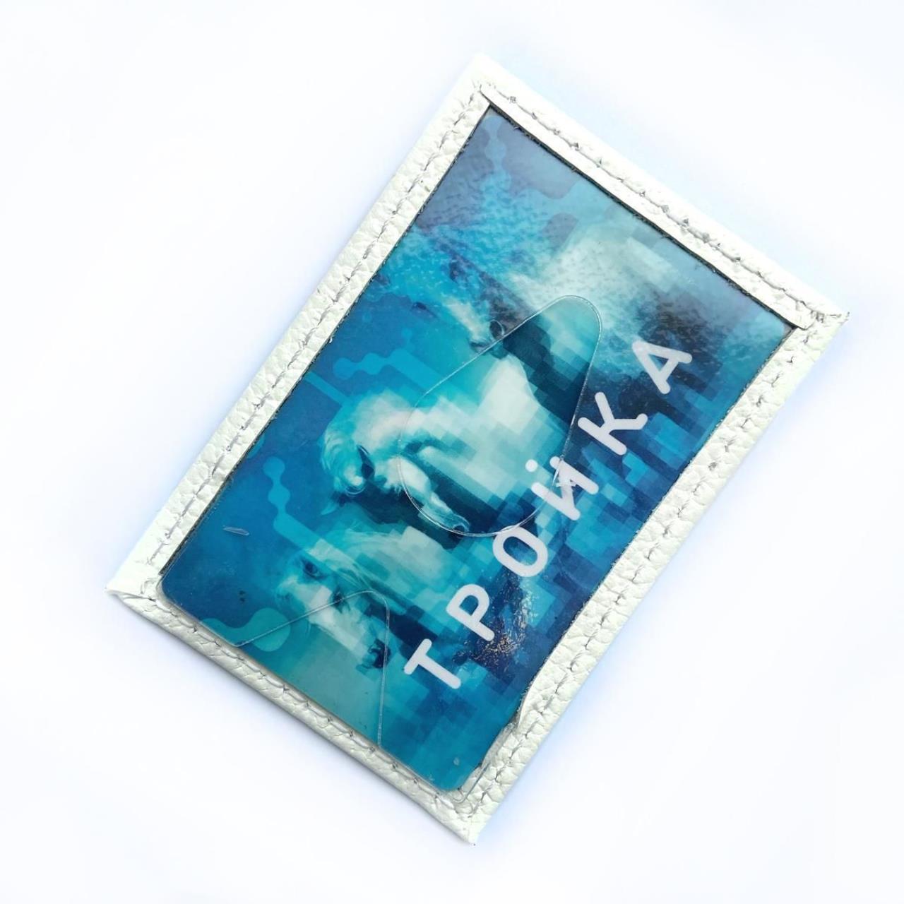 Футляр-обложка для проездного из натуральной кожи с тиснением. Яркий принт. Размер 9.5х5.5 см.