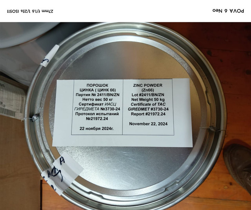 -ЦИНКОВОГО ПОРОШКА (99,999%)