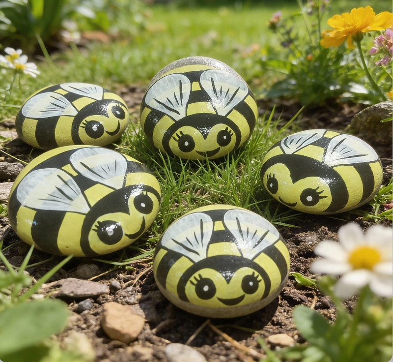 Камни декоративные в виде пчёлок. Можно заказать с другим эскизом. Опт и розница.