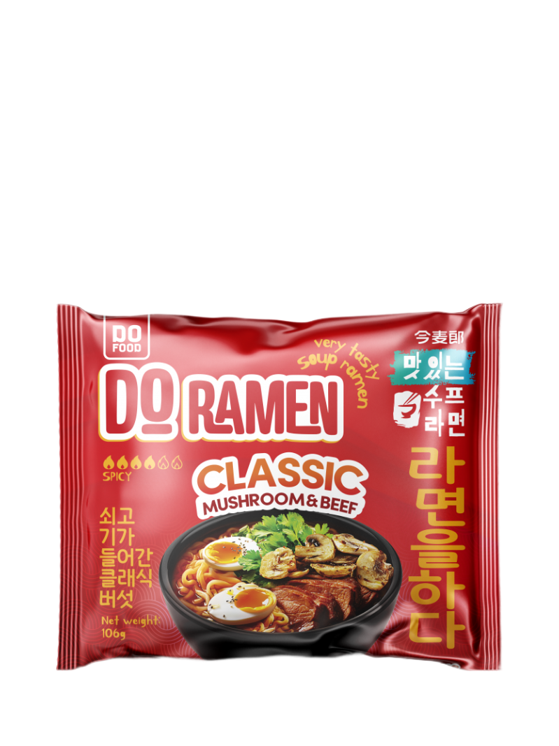 Насладитесь уникальным сочетанием вкуса говядины и свежих грибов с лапшой Do Ramen от бренда Do Food! Этот продукт станет идеальным решением для тех, кто ищет быстрый и вкусный способ утолить голод.