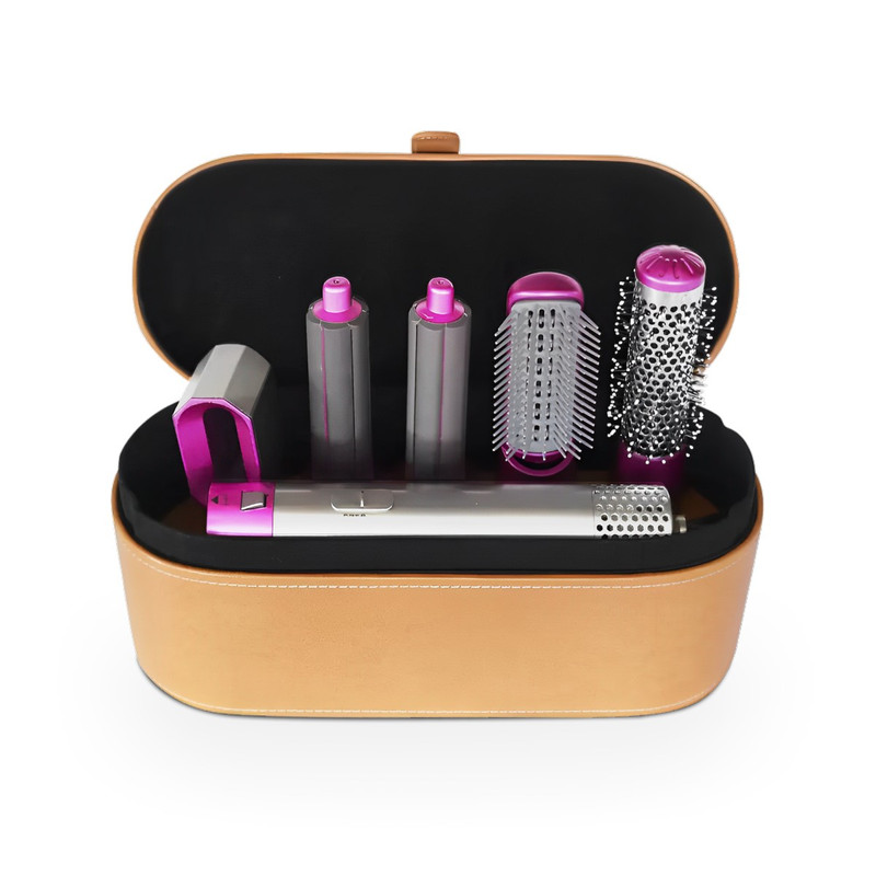 Стайлер для волос 5 в 1 в коричневом кейсе-кожа.