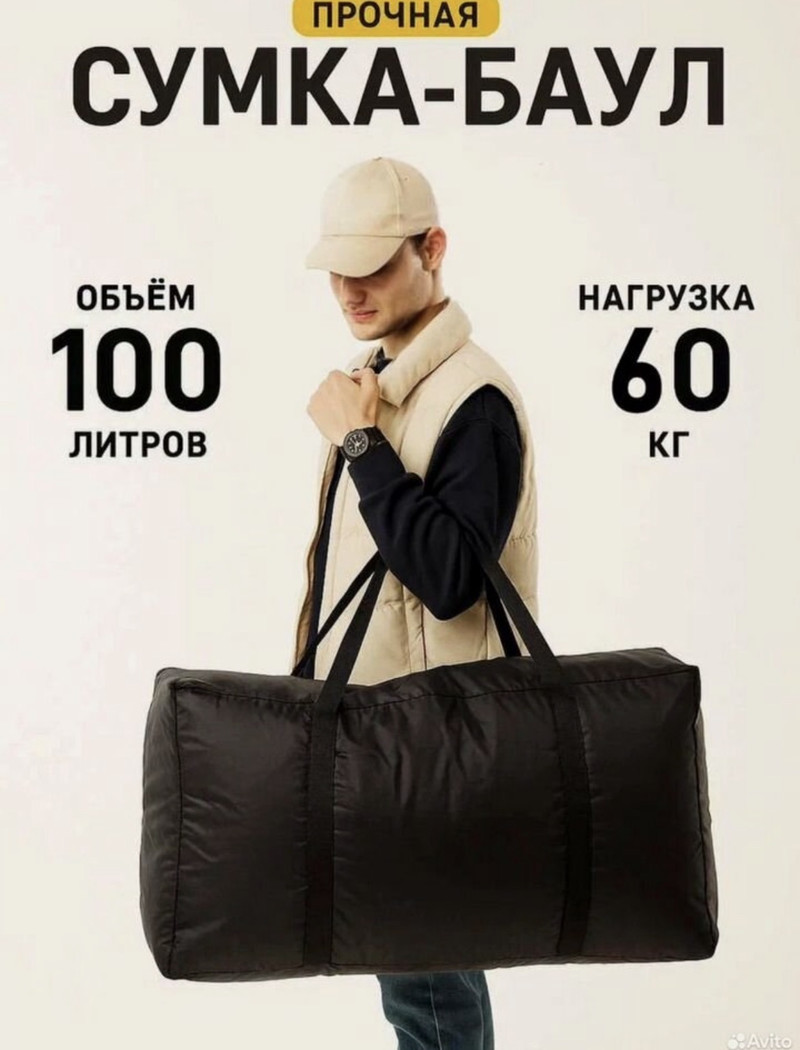 Прочный водостойкий баул из Оксфорда — 100 л, 75x40x34 смИщете надёжную и вместительную сумку для путешествий, хранения или перевозки вещей. Наш баул из плотного водостойкого Оксфорда — это идеальное решение для любых задач! Большой объём — 100 литровЛегко помещает одежду, обувь, снаряжение, инвентарь или даже оборудование. Подходит для поездок, дачи, переездов, хранения сезонных вещей. Прочная конструкция и усиленные швыСтропы прошиты по всему дну сумки, что обеспечивает высокую прочность и выдерживает нагрузку до 60 кг без риска разрыва. Водостойкий материал OxfordТкань защищает содержимое от дождя, влаги и грязи. Всё, что внутри, остаётся сухим и чистым даже в непогоду. Удобство и комфорт в использованииДлинные ручки позволяют носить баул как в руках, так и на плече. Сумка легко складывается и не занимает много места при хранении. Характеристики: • Размер: 75x40x34 см • Объём: 100 л • Материал: водостойкий Oxford • Максимальная нагрузка: до 60 кг • Усиленные прошитые ручки⸻ Идеально подходит для: • путешествий и командировок • хранения сезонной одежды • спортивного снаряжения • дачи, гаража, переезда.
