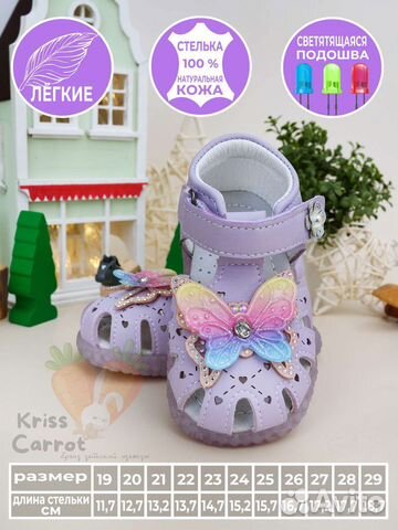 Отличный подарок на выписку из роддома. Сандалии детские для девочек из мягкой экокожи с застежкой липучкой-велькро, которая позволяет отрегулировать обувь по подъему, а также дает возможность легко и самостоятельно ребенку обуваться и разуваться. Детские босоножки для девочки с закрытым носком и задником фиксируют стопу в правильном положении, ортопедическая стелька изготовлена из натуральной кожи - это положительно влияет на правильное развитие стоп и всего опорно-двигательного аппарата. Подошва из полиуретана - очень легкая, эластичная, амортизирующая и оснащена светодиодами, мигающими при ходьбе. Сандалии LED детские для девочек подойдут для повседневной носки на улице и дома и в садике, так и для праздника или утренника.