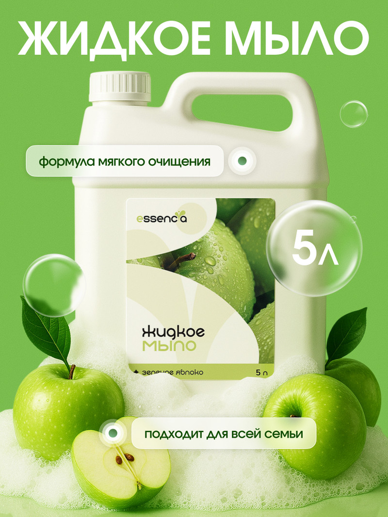 Погрузитесь в мир свежести и чистоты с жидким мылом “Essencia”! Это мыло не только эффективно очищает, но и дарит приятный аромат спелого яблока, который наполняет ваше пространство легкостью и уютом.