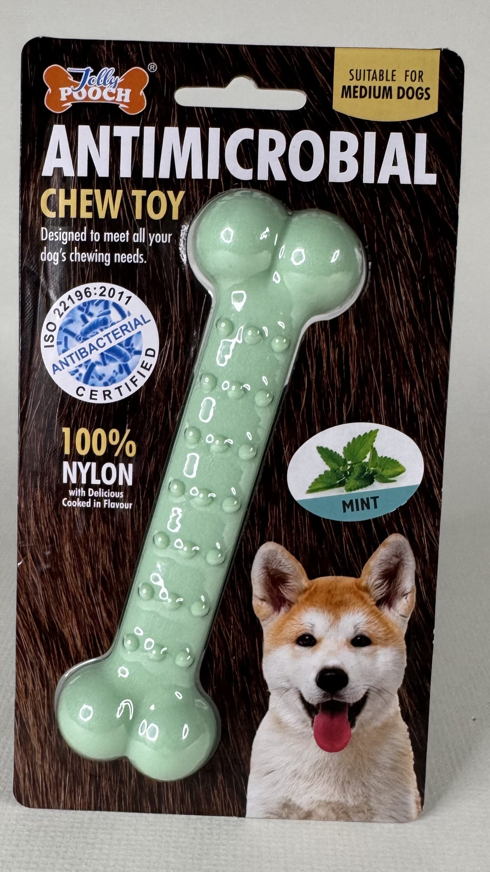 Антимикробные свойства игрушки убивают микроорганизмы и препятствуют росту бактерий, плесени и грибков. Антимикробные добавки добавляются в игрушку во время производства и будут действовать в течении всего срока службы игрушки. Доказано, что наши антимикробные нейлоновые жевательные игрушки достигли эффективности более 99,99%.Помогает поддерживать чистоту зубов и массирует десныУдовлетворяет естественные инстинкты вашей собакиЛегко чистить, можно мыть и даже кипятить.