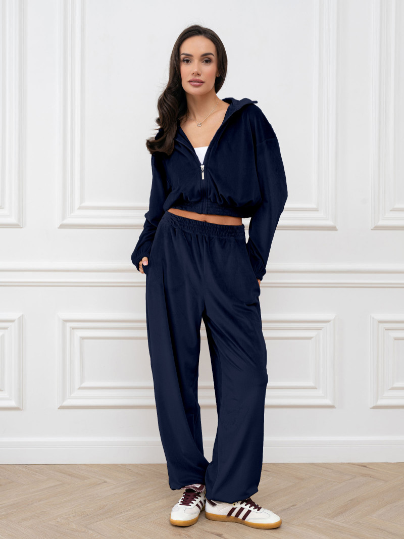 Легкий, но теплый велюр идеально подходит для демисезона, когда погода переменчива. Костюм можно носить как для прогулок, так и для повседневных дел, сочетая с кроссовками, кедами или модными ботинками.