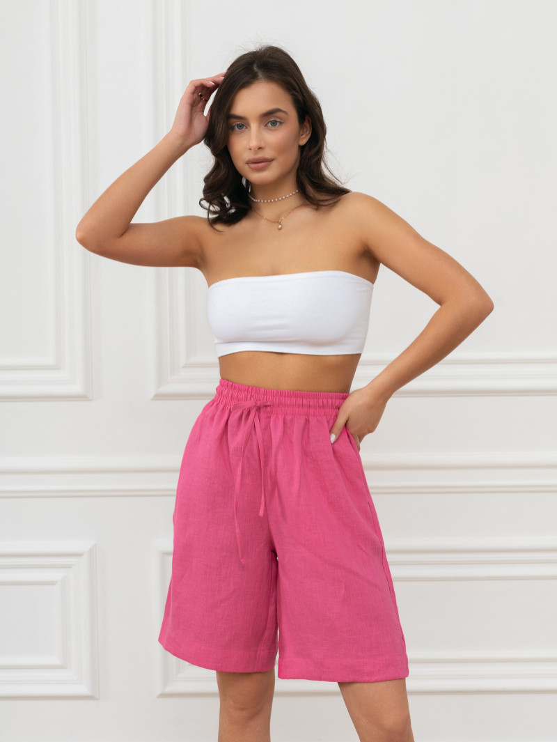 Летние пляжные шорты для женщин из 100% льна — это классический вариант летнего гардероба. Короткие шорты оверсайз свободного кроя обеспечат стильный и современный образ на морском отдыхе или во время летних прогулок и пикников. Лён создает эффект легкости и обеспечивает комфорт и свободу движений.
