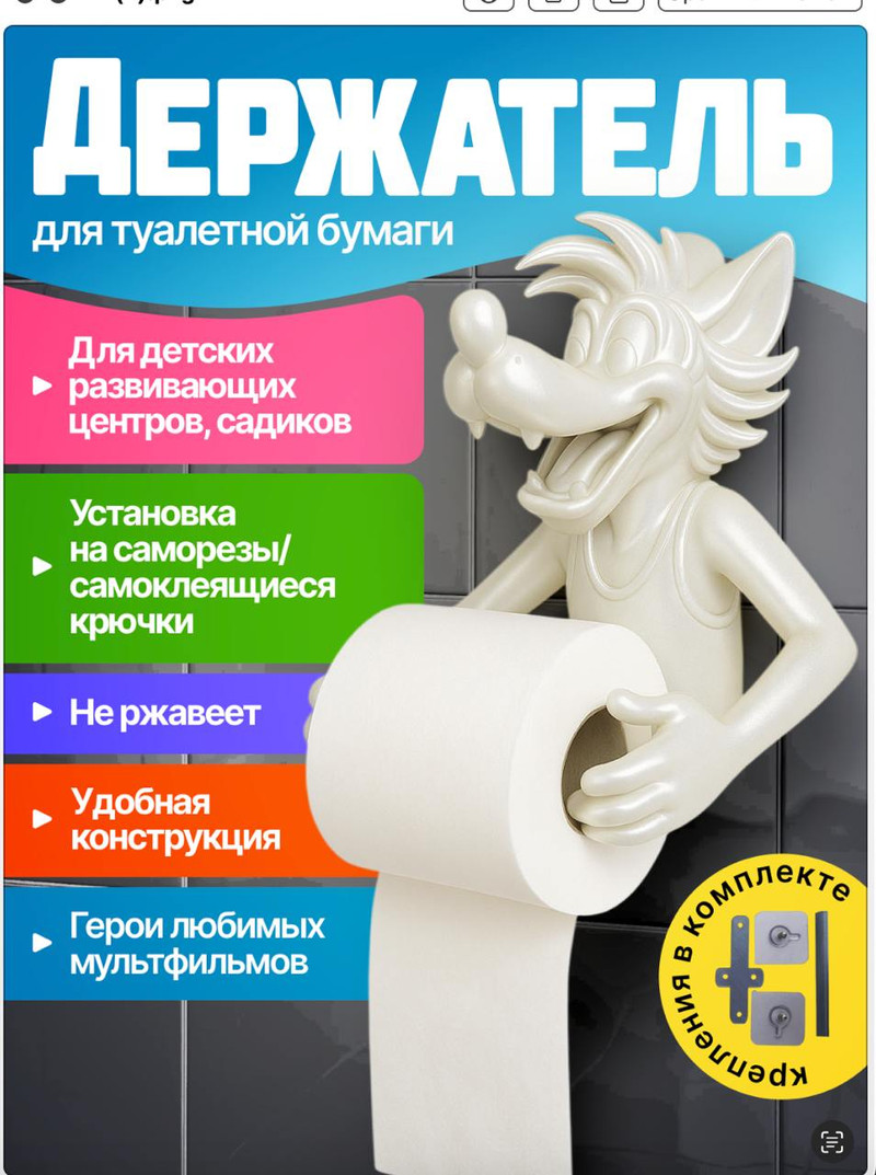 Держатель для туалетной бумаги детский — идеальный аксессуар для ванной комнаты, веселый Волк нравится детям.