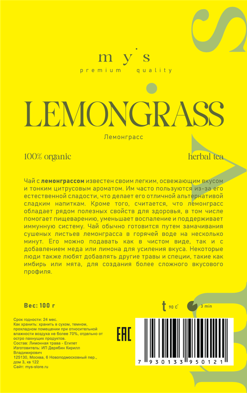 Чтобы купить Травяной чай Лемонграсс my’s LEMONGRASS, 100 г оптом по цене 355 руб., свяжитесь с поставщиком. Компания поставщик — My's (ИП «Дерябин Кирилл Владимирович») из города Москва. Доставка возможна транспортной компанией, самовывоз, курьером. Способы оплаты: безналичная оплата, наличными.