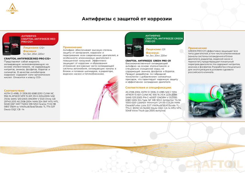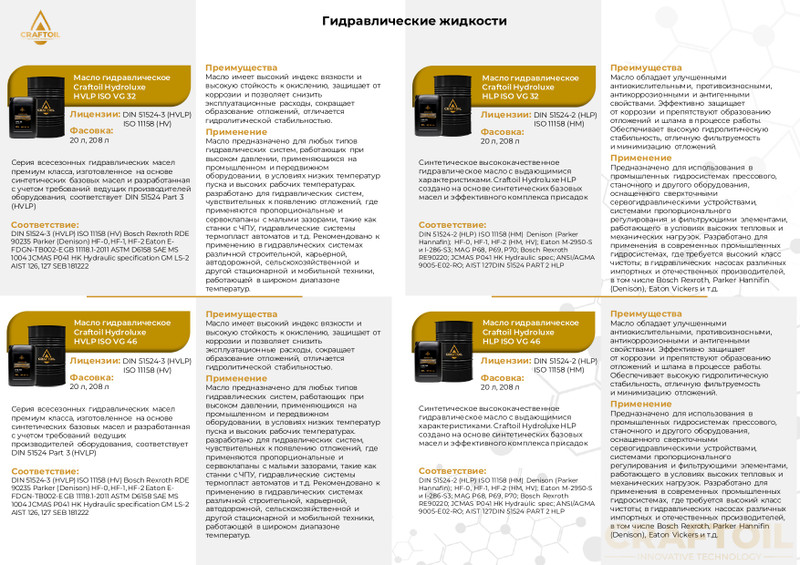 Вся продукция CRAFTOIL выпускается в строгом соответствии с международной