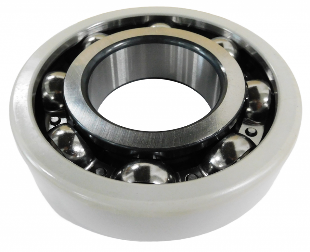 Подшипник токоизолированный применяется на электродвигателях с переменной частотой вращения для защиты от контурных токов, вызванных работой полупроводникового преобразователя. Специально плазменное напыление на внешнее кольцо из оксида алюминия создает надежный изоляционный слой, выдерживающий напряжение до 3000 вольт. Токоизолированный подшипник имеет такие же характеристики и размеры как стандартный подшипник, поэтому подходит для большинства типов электродвигателей и может быть легко установлен во время технического обслуживания мотора.