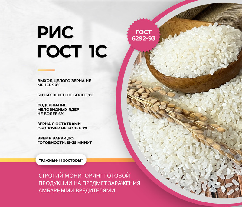 Чтобы купить Рис ГОСТ 1с оптом по цене по запросу, свяжитесь с поставщиком. Компания поставщик — Южные Просторы (ИП «Чиркова Инна Владимировна») из города Краснодар (Краснодарский край). Доставка возможна самовывоз, транспортной компанией, железной дорогой.