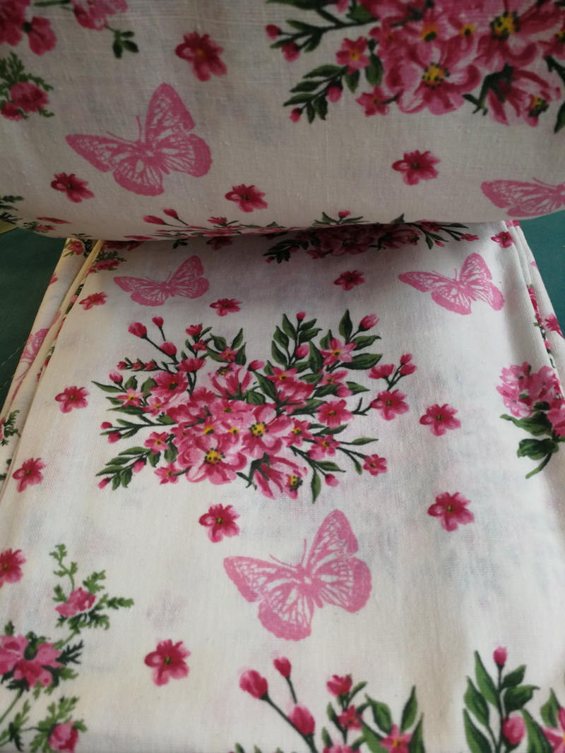 цвет: белый с розовыми цветами и бабочками