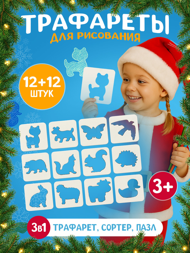 КАК ИСПОЛЬЗОВАТЬ ТРАФАРЕТ: возьмите карточку, вытащите внутреннюю часть, обведите контур карандашом, ручкой или фломастером. Убрав карточку, вы можете дорисовать персонажа, например мордочку у кошки или крылья у бабочки. С данными трафаретами вы можете придумать огромное количество вариантов и для раскрытия творческих способностей. Развивашка отлично подойдет для занятия творчеством для детей разных возрастов (2 года, 3 года, 4 года) дома и в садике. С этим набором отлично развивается мелкая моторика 3-4 года.