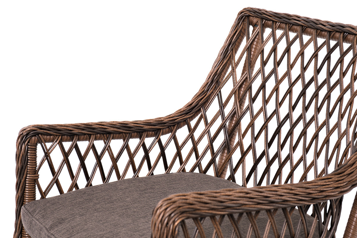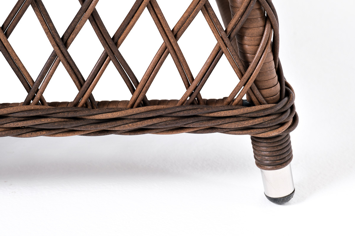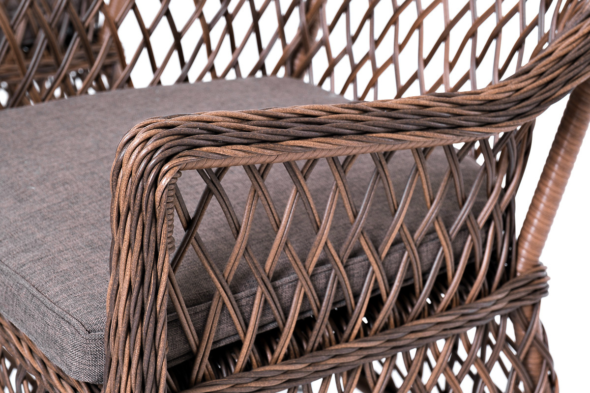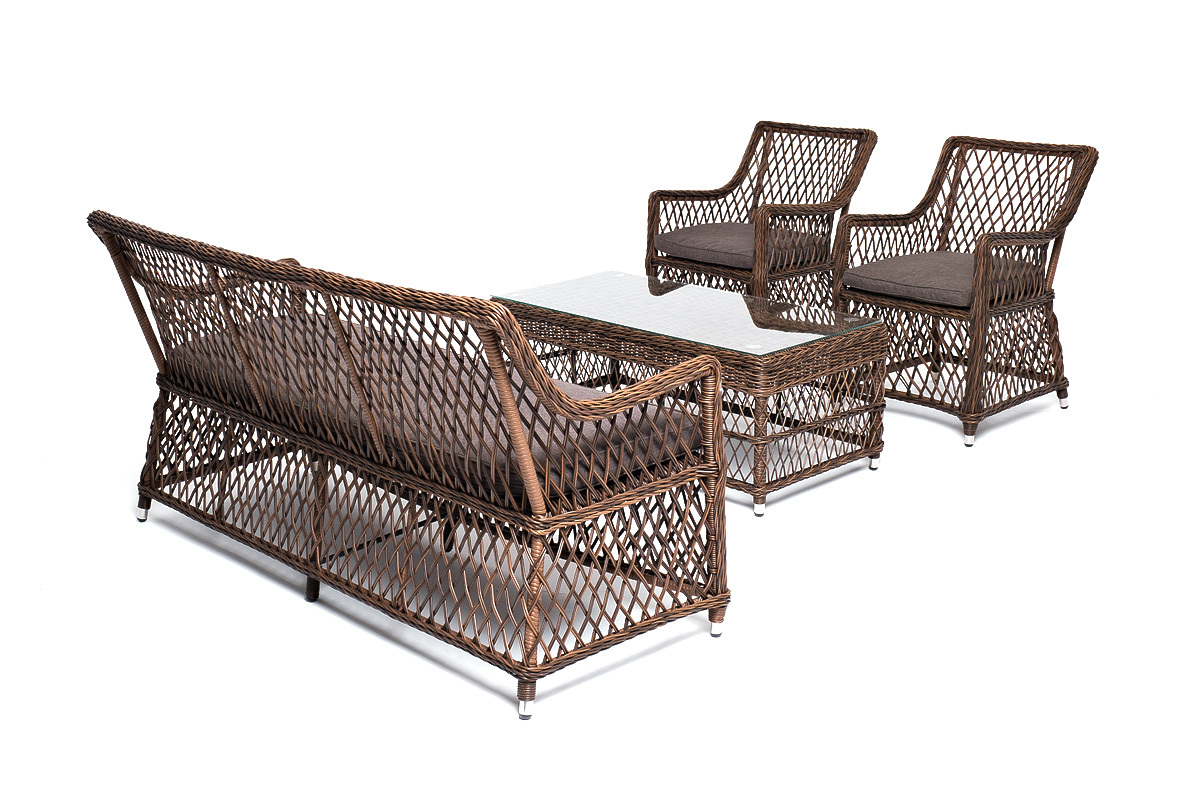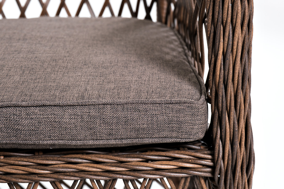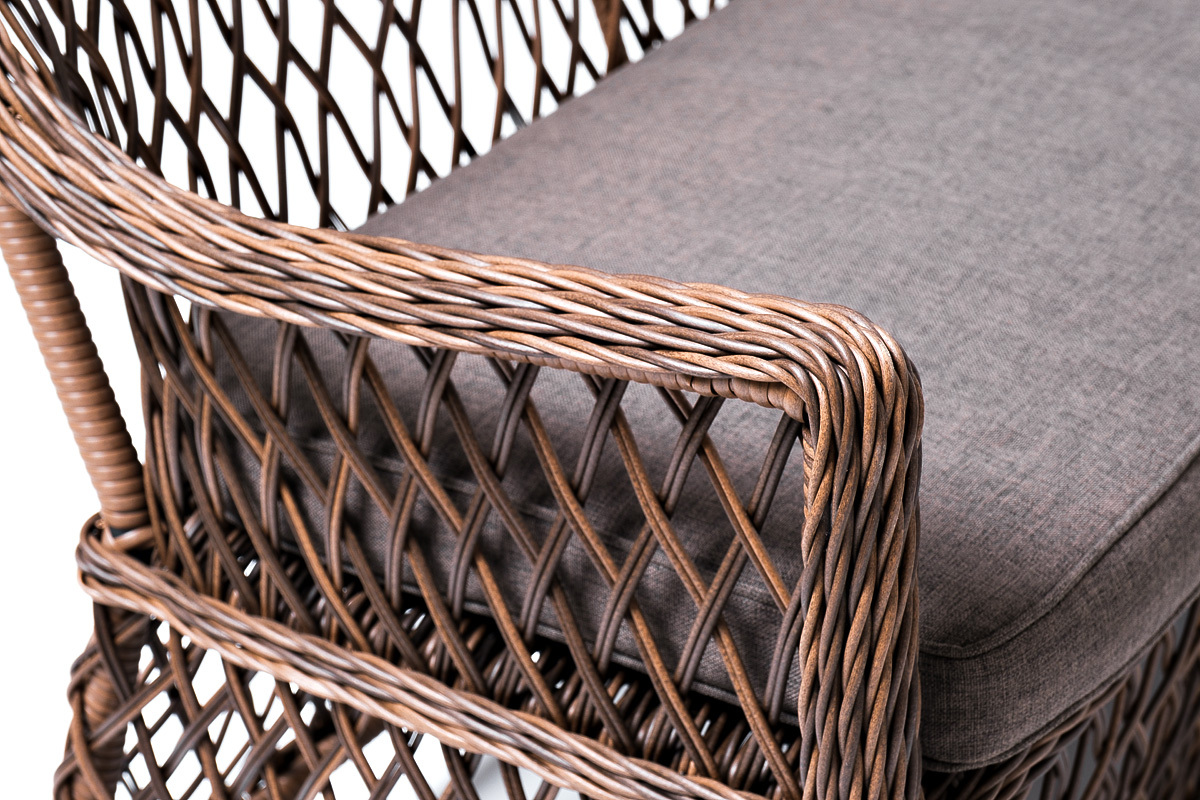 Лаунж-зона «Асти» подходит для размещения четырех персон. За прочность конструкции отвечает каркас из алюминия. В состав входят: – двухместный диван - 1600×660×850 мм. – кресло (2 шт.) - 550×660×850 мм. – журнальный столик - 1120×570×450 мм (толщина стеклянной столешницы в 0,5 см). Оплетка выполнена вручную искусственным ротангом коричневого цвета, диван и кресло укомплектованы подушками из 100% полиэстера, которые пропитаны специальным составом, обладающим влагоотталкивающим свойством. “Латте” диван двухместный из искусственного ротанга, цвет коричневый 1шт. 1 600Х660Х850, “Латте” плетеное кресло из искусственного ротанга, цвет коричневый 2шт. 550Х660Х850, “Гранд Латте” стол журнальный из искусственного ротанга, цвет коричневый 1шт. 1 120Х570Х450,