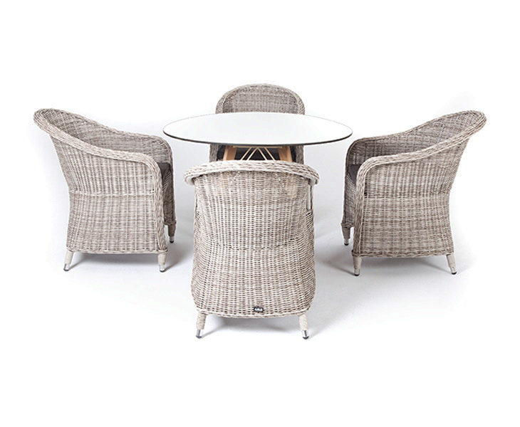 Обеденная группа «Белла» рассчитана на 4 персоны. В состав комплекта входит: - «Франческо» интерьерный стол из HPL, размером - 900х900х750 мм. - 4 плетеных кресла «Равенна» из искусственного ротанга, размером - 570×680×810 мм. “Франческо” интерьерный стол из HPL круглый Ø90см, цвет молочный 1шт. 900Х900Х750, “Равенна” плетеное кресло из искусственного ротанга, цвет бежевый 4шт. 570Х680Х810,