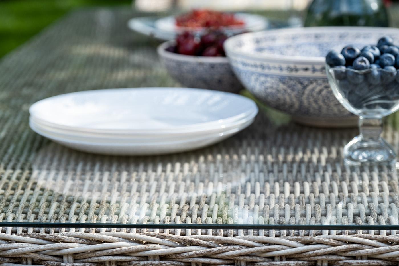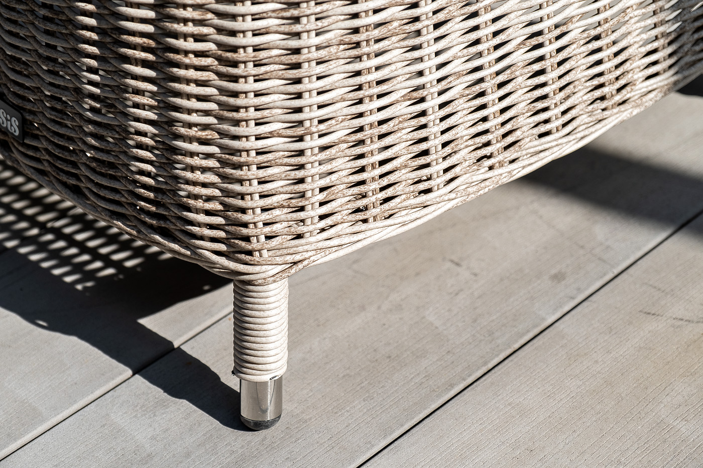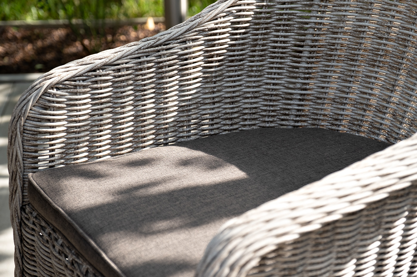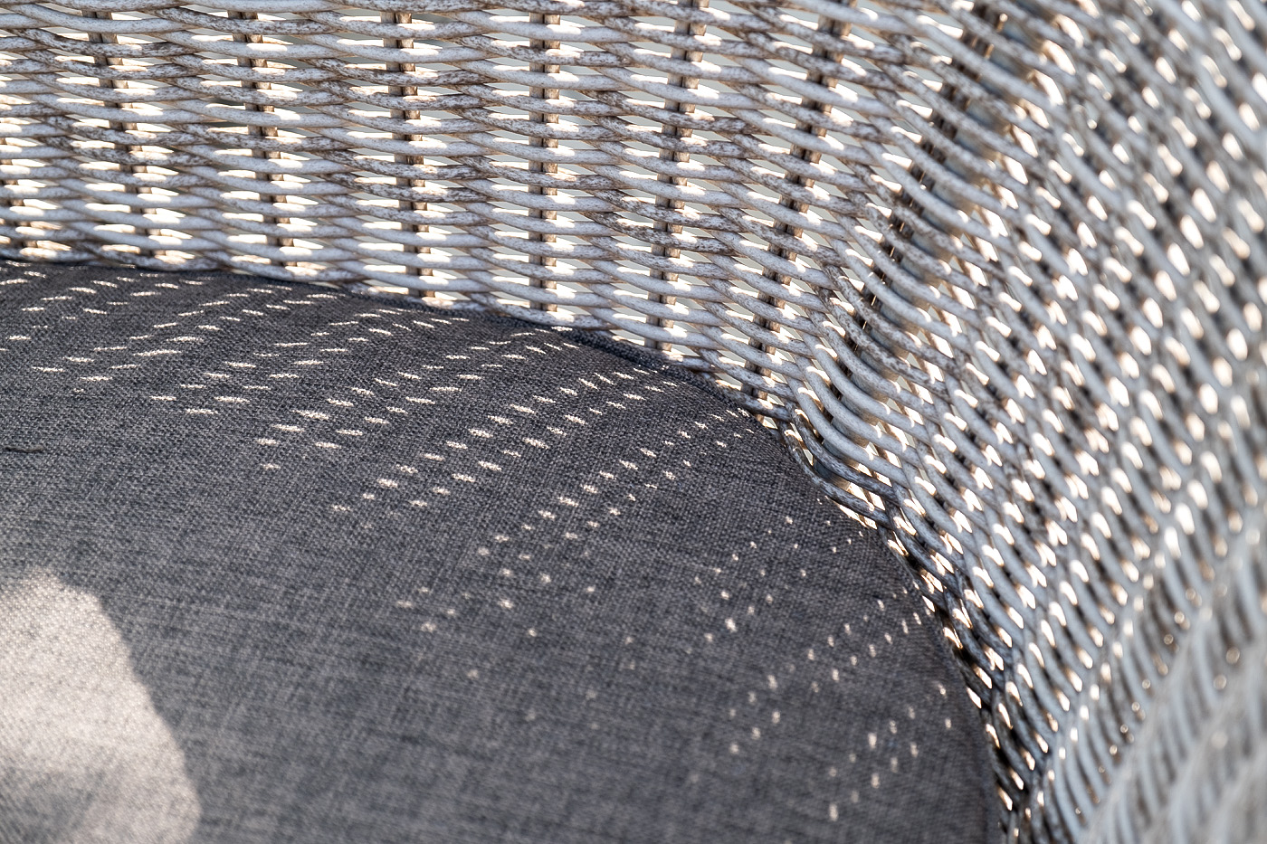 Премиальная обеденная группа «Эспрессо» для большой компании. В набор входит большой прямоугольный стол «Латте», размером - 1600х900х750 мм и 6 кресел «Равенна», размер - 570×680×810 мм, в бежевом оттенке. Каркас всех предметов мебели изготовлен из легкого и прочного алюминия, оплетенного вручную искусственным ротангом. Стол для удобства использования накрыт прочным стеклом, кресла укомплектованы подушками со съемными чехлами серо-коричневого цвета. Вы можете заказать любое количество элементов из данного набора. “Латте” плетеный стол из искусственного ротанга 160х90см, цвет бежевый 1шт. 1 600Х900Х750, “Равенна” плетеное кресло из искусственного ротанга, цвет бежевый 6шт. 570Х680Х810,