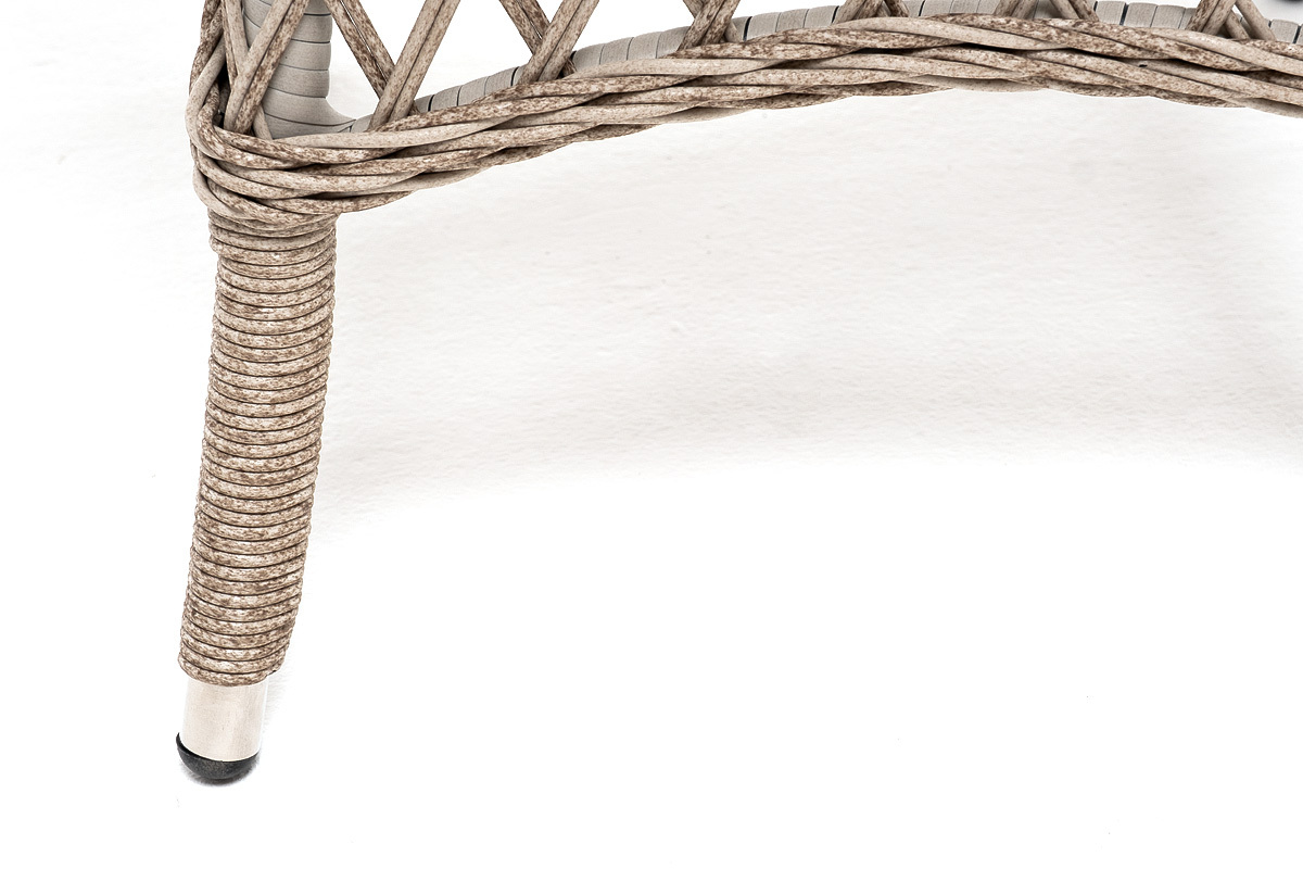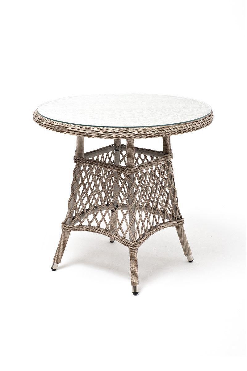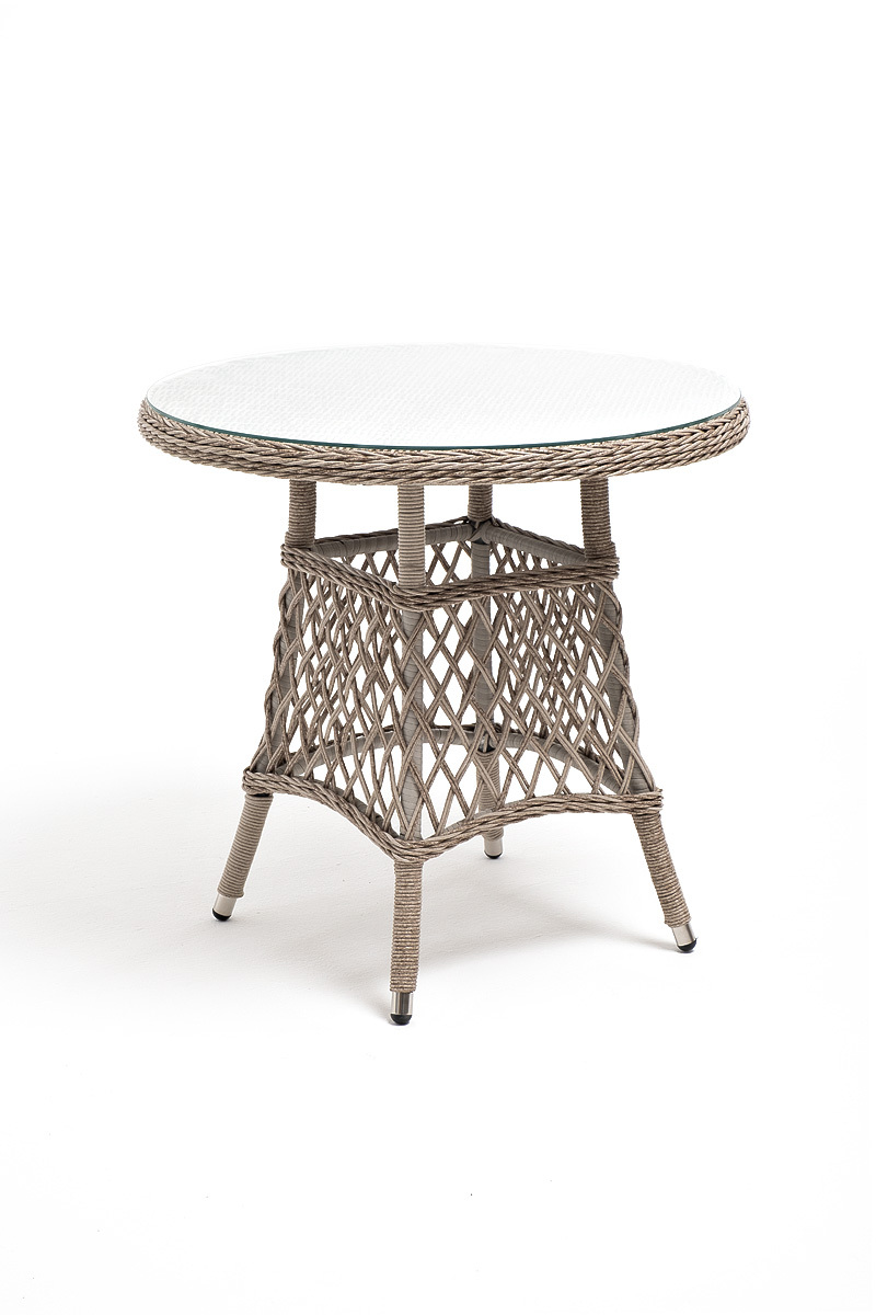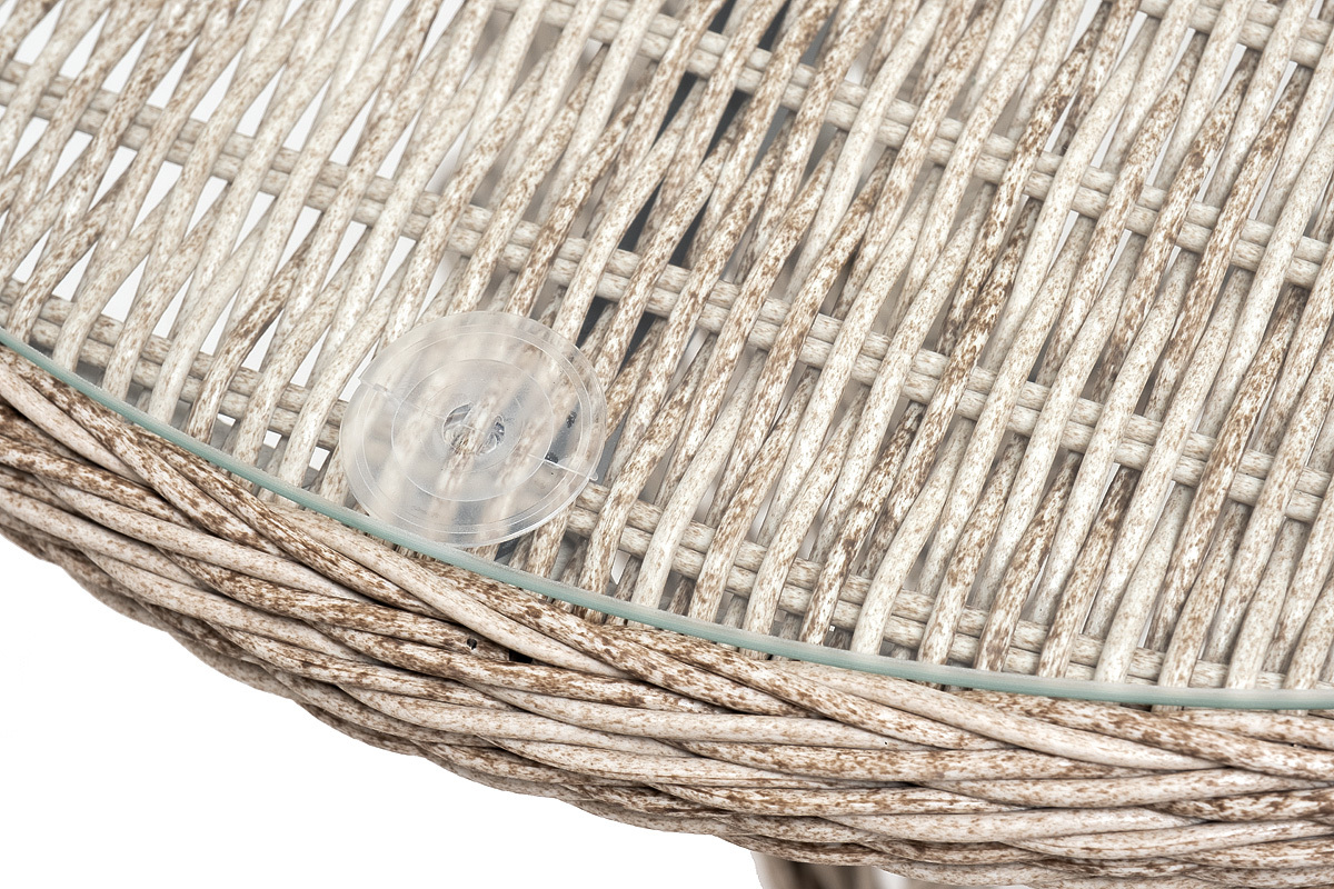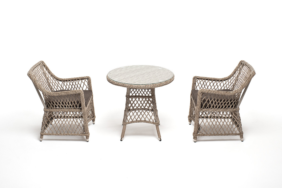 Комплект «Эспрессо–80 L» можно использовать в качестве обеденной группы на 2 персоны или как кофейный комплект на балконе или террасе. В плетеный комплект входит круглый стол «Эспрессо» диаметром 80 см с ударопрочной стеклянной столешницей и 2 кресла коллекции «Латте» 550×660×850 мм. Набор представлен в бежевом цвете. “Эспрессо” плетеный круглый стол, диаметр 80 см, цвет бежевый 1шт. 800Х800Х750, “Латте” плетеное кресло из искусственного ротанга, цвет бежевый 2шт. 550Х660Х850,