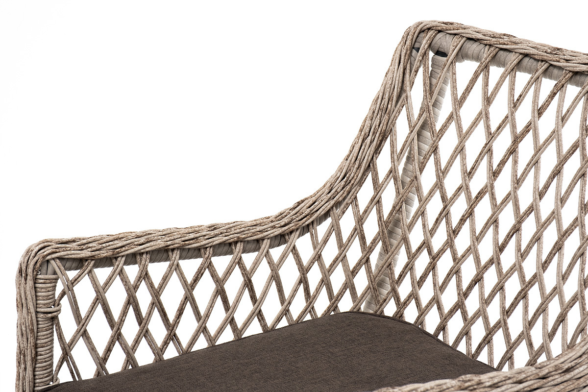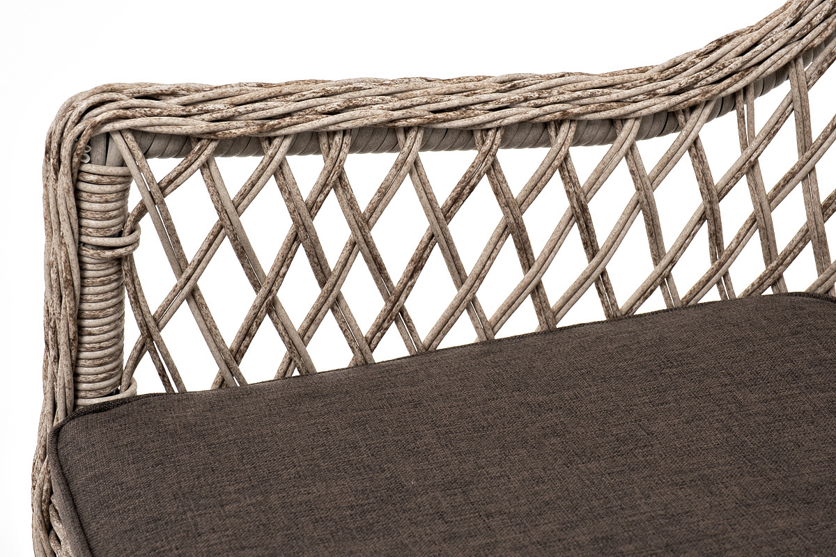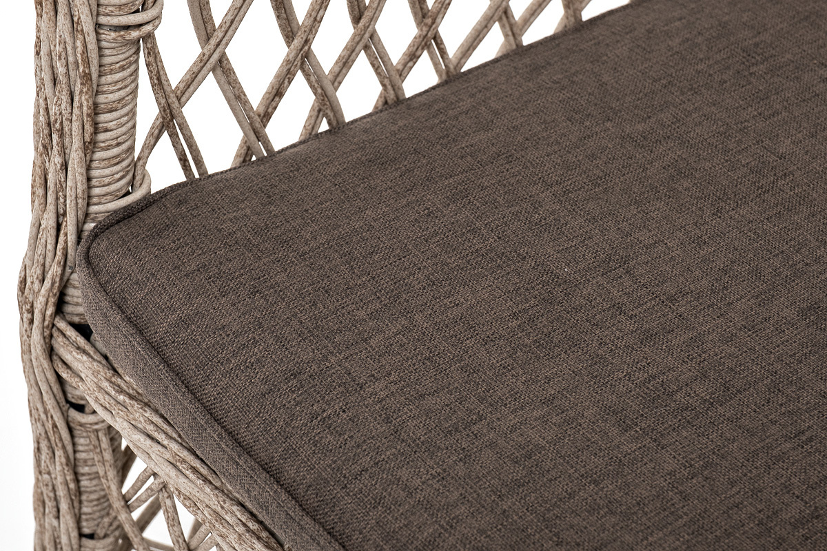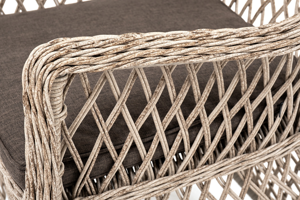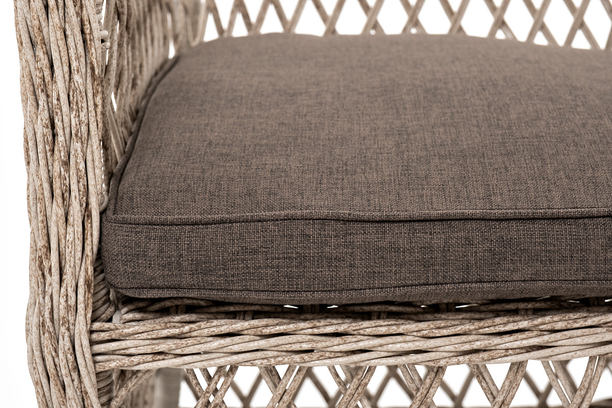 Комплект «Эспрессо–80 L» можно использовать в качестве обеденной группы на 2 персоны или как кофейный комплект на балконе или террасе. В плетеный комплект входит круглый стол «Эспрессо» диаметром 80 см с ударопрочной стеклянной столешницей и 2 кресла коллекции «Латте» 550×660×850 мм. Набор представлен в бежевом цвете. “Эспрессо” плетеный круглый стол, диаметр 80 см, цвет бежевый 1шт. 800Х800Х750, “Латте” плетеное кресло из искусственного ротанга, цвет бежевый 2шт. 550Х660Х850,