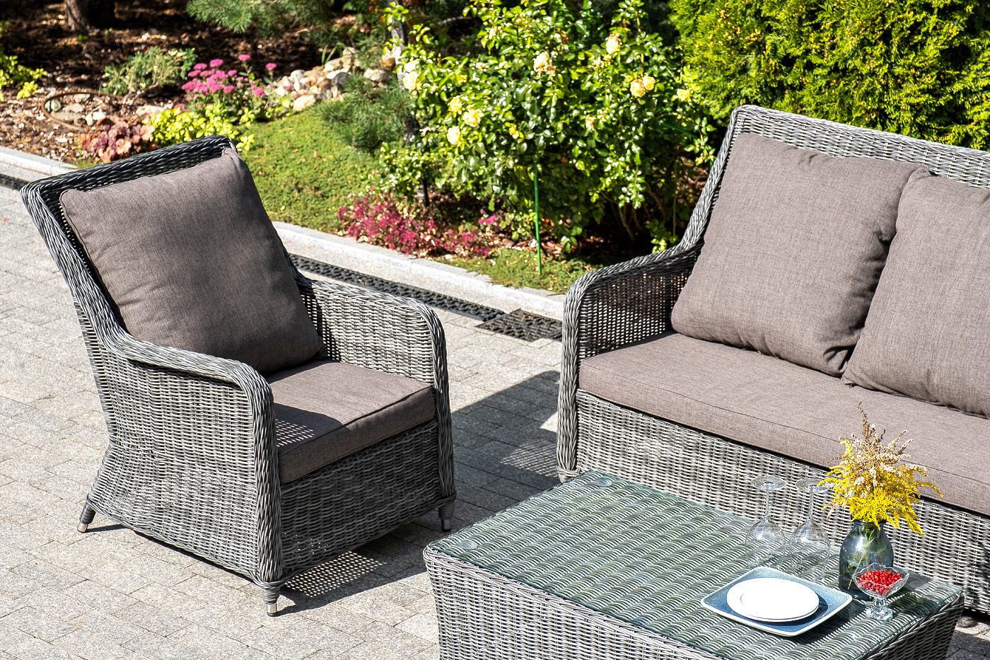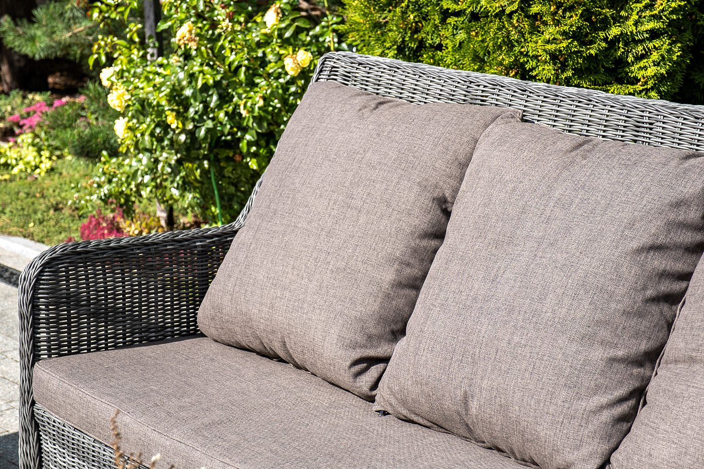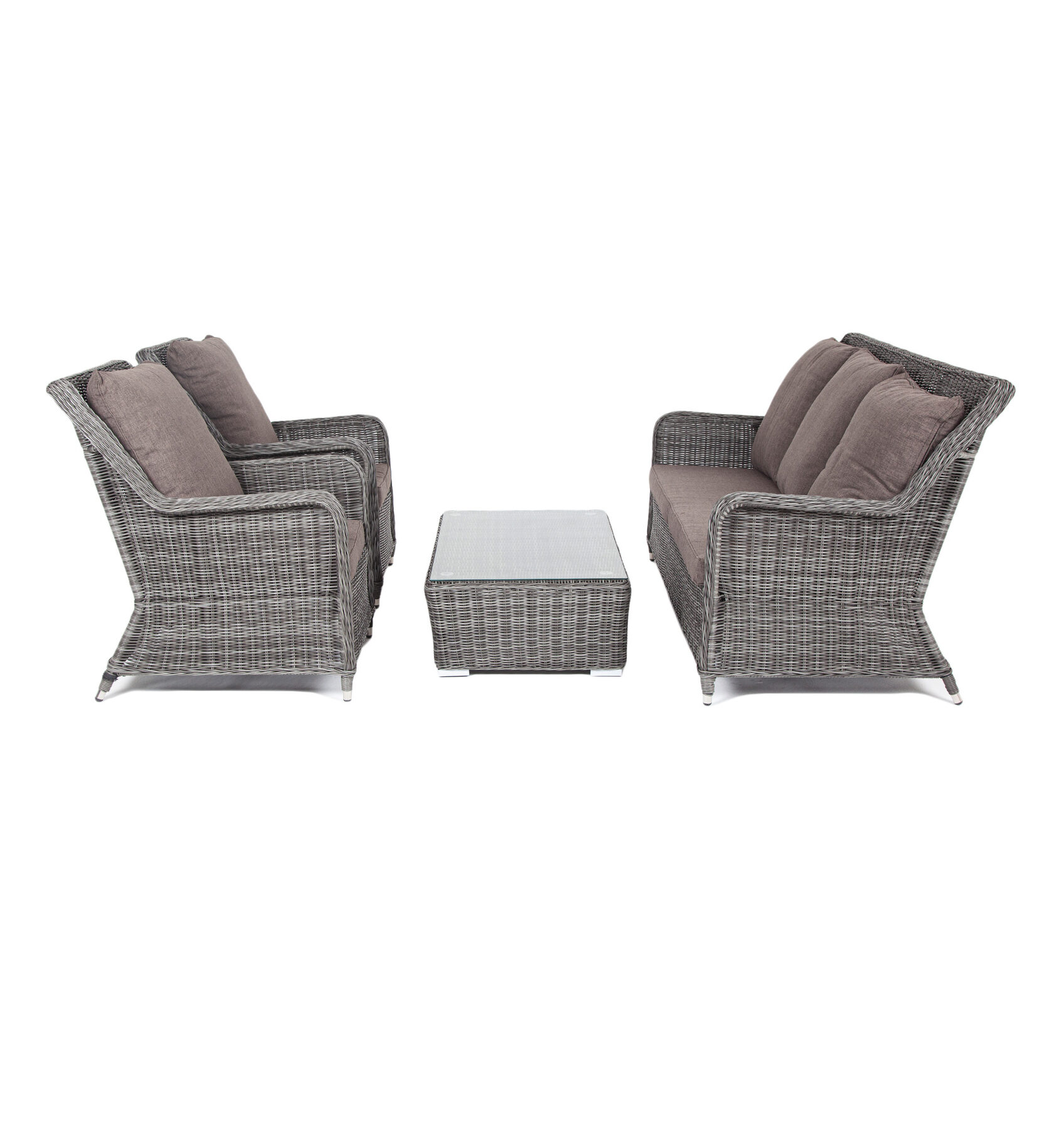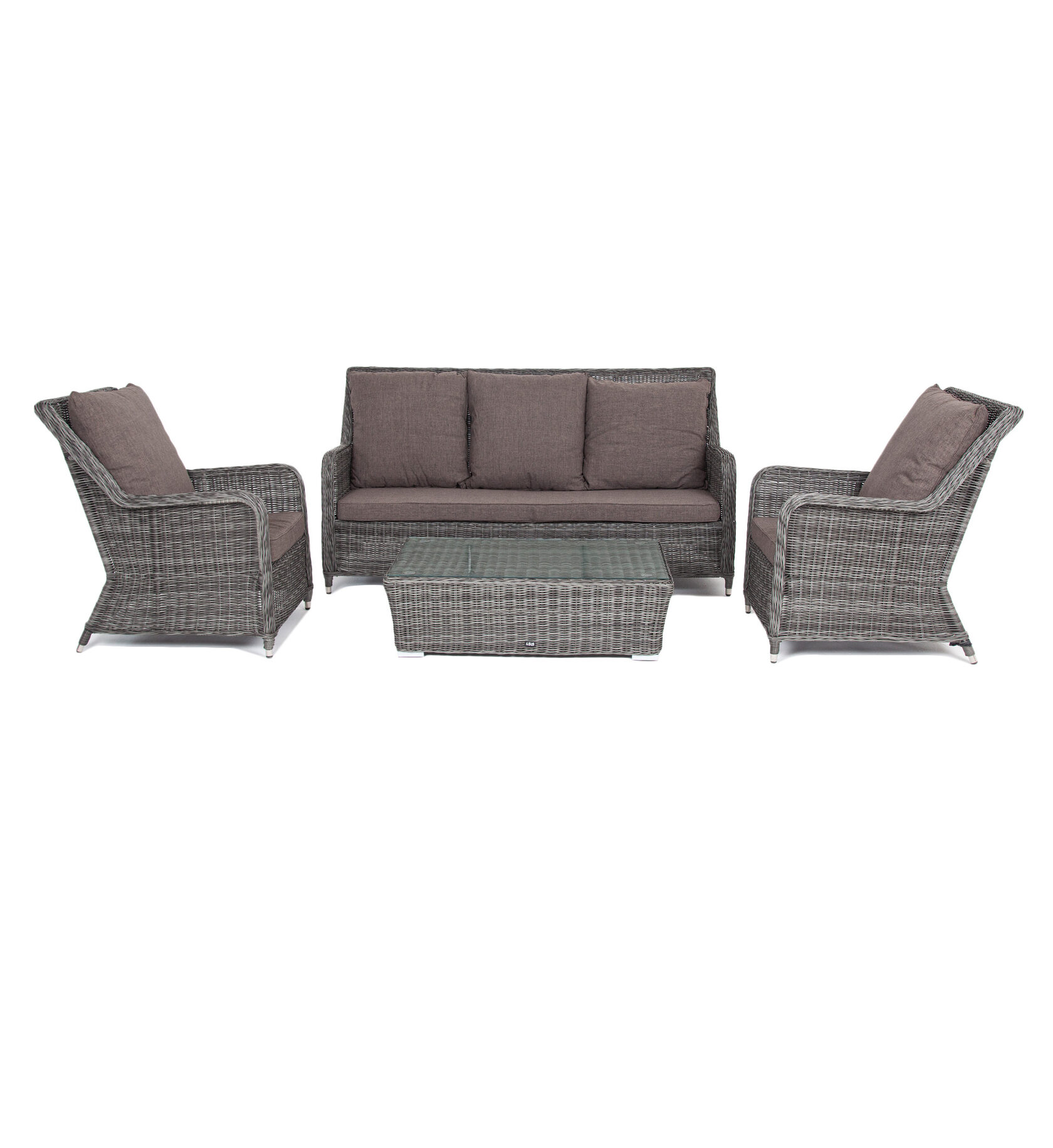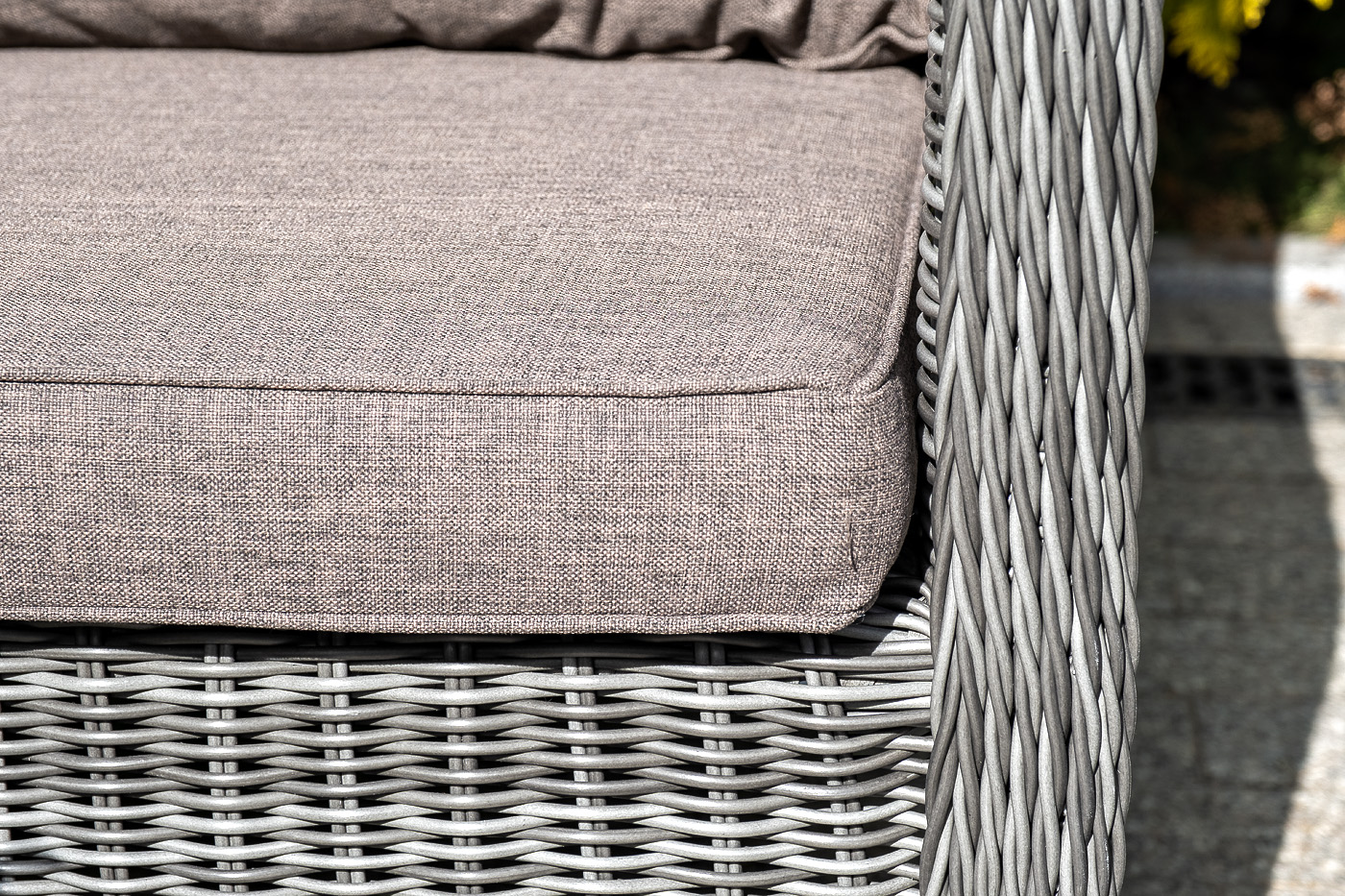 Вместительная лаунж-зона «Гляссе» состоит из: - трехместного дивана – 1900×880×990 мм. - двух кресел – 730×880×990 мм. - журнального столика – 1100×660×340 мм. Модели имеют алюминиевый каркас, который оплетен вручную искусственным ротангом. Плетеная мебель дополнена удобными подушками в серо-коричневых чехлах. При их изготовлении используют полиэстер, плотность – 230гр/м2. Он обрабатывается влагоотталкивающей пропиткой для повышения защитных свойств материала. Журнальный столик оснащен пластиковыми ножками и столешницей из закаленного стекла толщиной 5 мм. “Гляссе” диван трехместный из искусственного ротанга, цвет графит 1шт. 1 900Х880Х990, “Гляссе” кресло плетеное из искусственного ротанга, цвет графит 2шт. 730Х880Х990, “Капучино” журнальный столик из искусственного ротанга, цвет графит 1шт. 1 100Х660Х340,