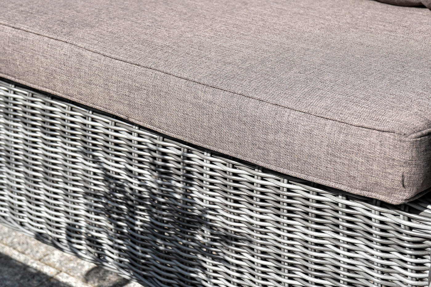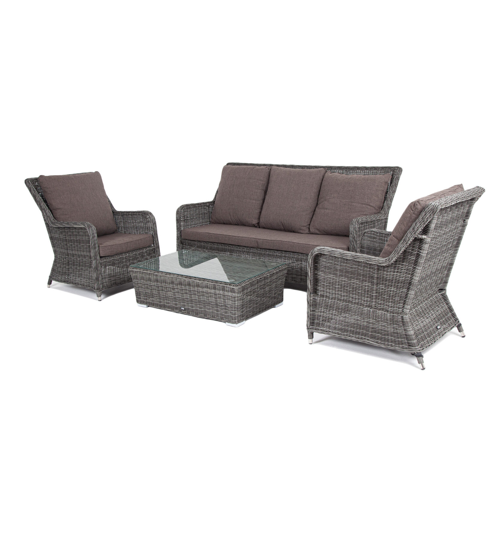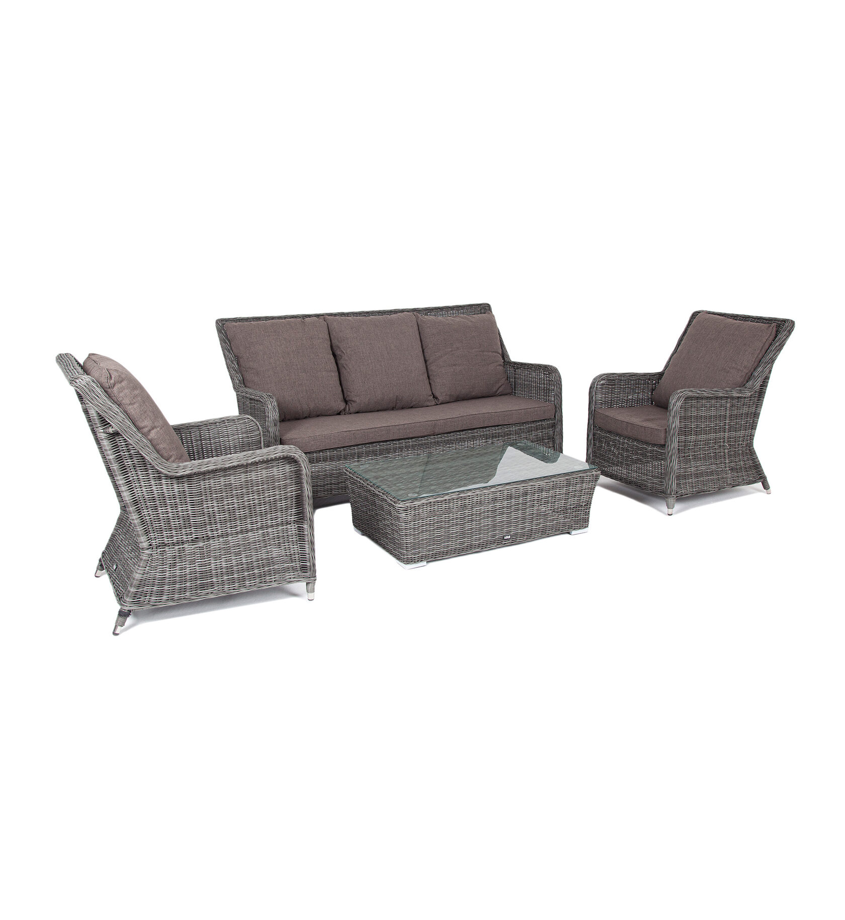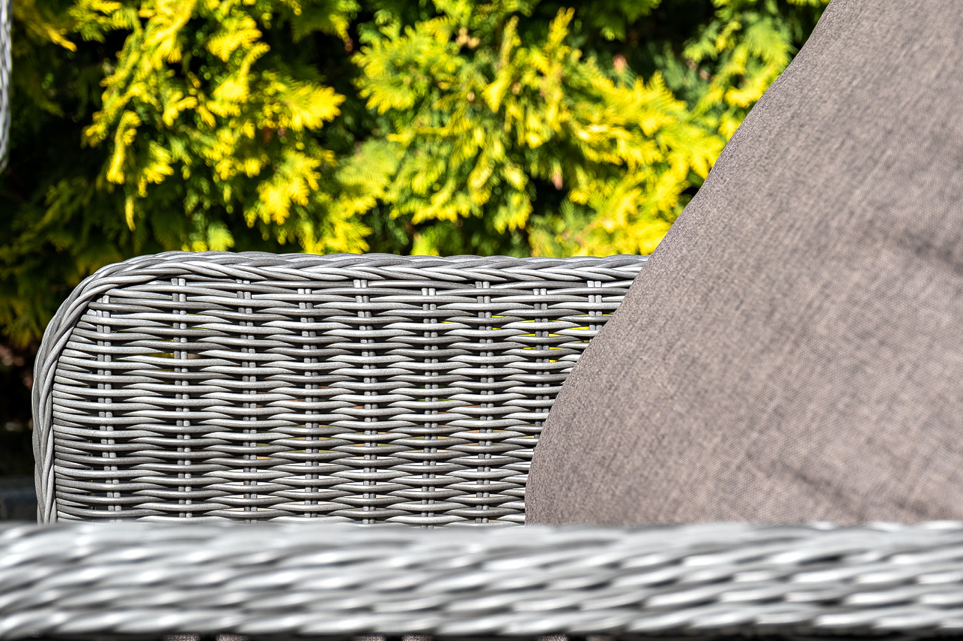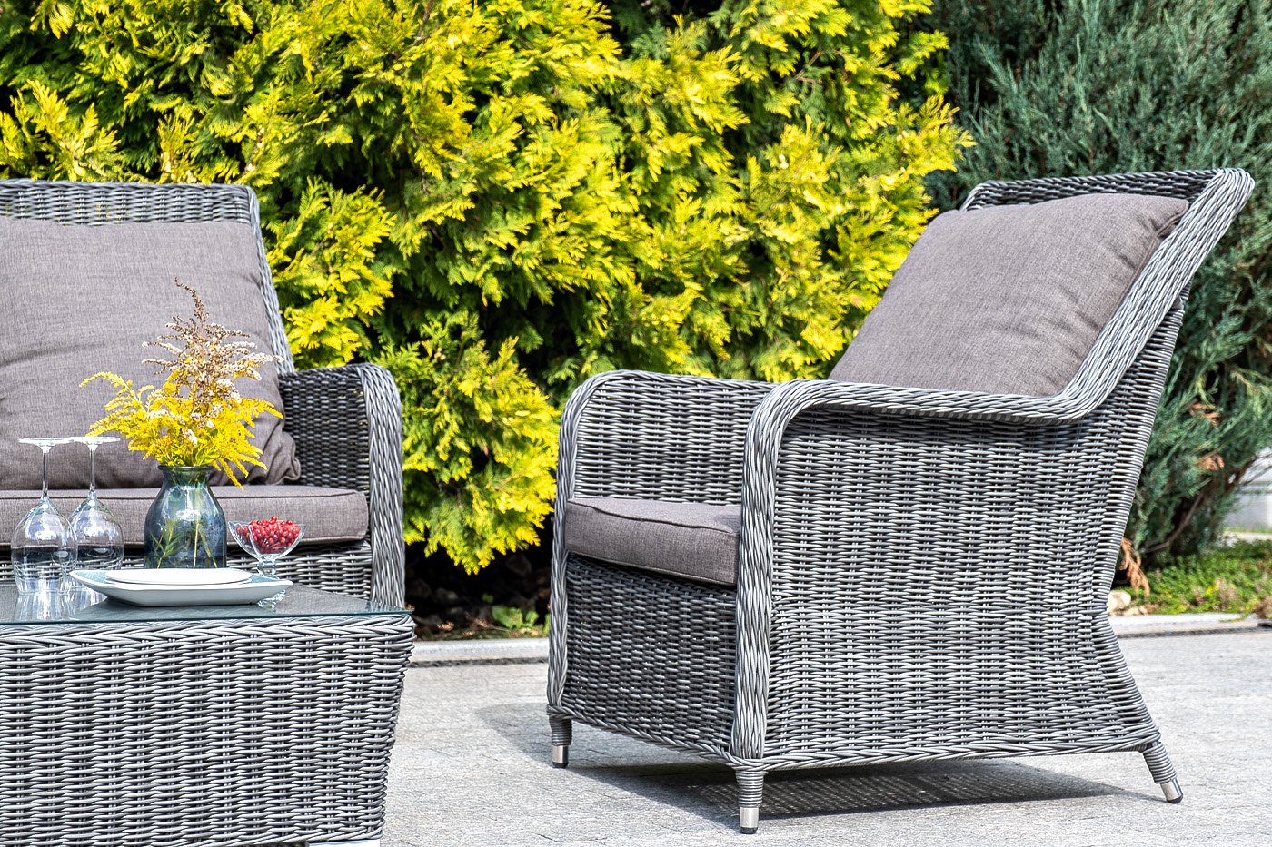Вместительная лаунж-зона «Гляссе» состоит из: - трехместного дивана – 1900×880×990 мм. - двух кресел – 730×880×990 мм. - журнального столика – 1100×660×340 мм. Модели имеют алюминиевый каркас, который оплетен вручную искусственным ротангом. Плетеная мебель дополнена удобными подушками в серо-коричневых чехлах. При их изготовлении используют полиэстер, плотность – 230гр/м2. Он обрабатывается влагоотталкивающей пропиткой для повышения защитных свойств материала. Журнальный столик оснащен пластиковыми ножками и столешницей из закаленного стекла толщиной 5 мм. “Гляссе” диван трехместный из искусственного ротанга, цвет графит 1шт. 1 900Х880Х990, “Гляссе” кресло плетеное из искусственного ротанга, цвет графит 2шт. 730Х880Х990, “Капучино” журнальный столик из искусственного ротанга, цвет графит 1шт. 1 100Х660Х340,