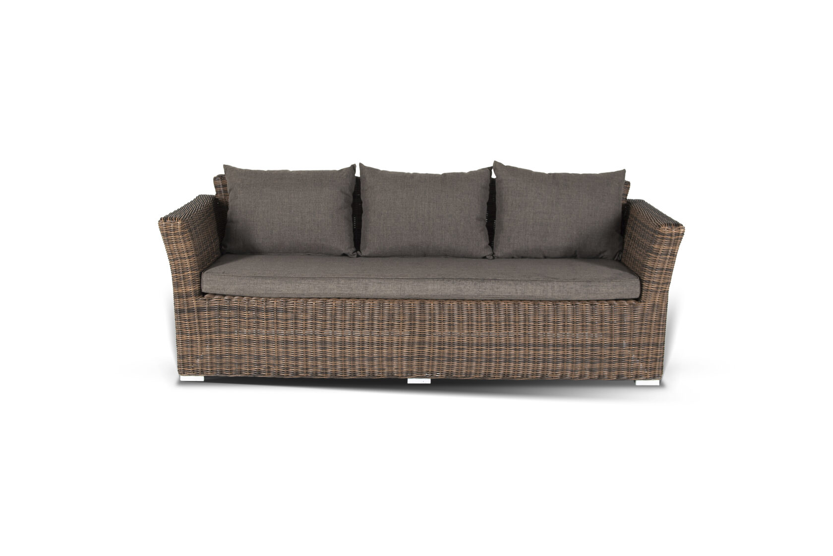 Лаунж-зона «Капучино Дабл» является практичным решением для большой семьи или компании, рассчитанной на 7 персон. В комплект садовой мебели входят: - трехместный диван, размером – 2220×865×815 мм. - двухместный диван, размером – 1700×865×815 мм. - два кресла, размером – 1040×865×815 мм. - журнальный столик, размером – 1100×660×340 мм. При изготовлении каркаса используется качественный алюминий. Он задекорирован коричневым плетением, которое произведено из круглого искусственного ротанга. Мягкие подушки входят в состав к диванам и креслам. Они имеют съемные чехлы из полиэстера 230гр/м2. Влагоотталкивающая пропитка повышает устойчивость изделий. Цвет подушек – серо-коричневый. Стеклянная столешница дополняет плетеный столик. Выполнена из закаленного высокопрочного стекла, толщиной 5 мм. “Капучино” диван из искусственного ротанга двухместный, цвет коричневый 1шт. 1 700Х865Х815, “Капучино” диван из искусственного ротанга трехместный, цвет коричневый 1шт. 2 220Х865Х815, “Капучино” журнальный столик из искусственного ротанга, цвет коричневый 1шт. 1 100Х660Х340, “Капучино” кресло из искусственного ротанга, цвет коричневый 2шт. 1 040Х865Х815,