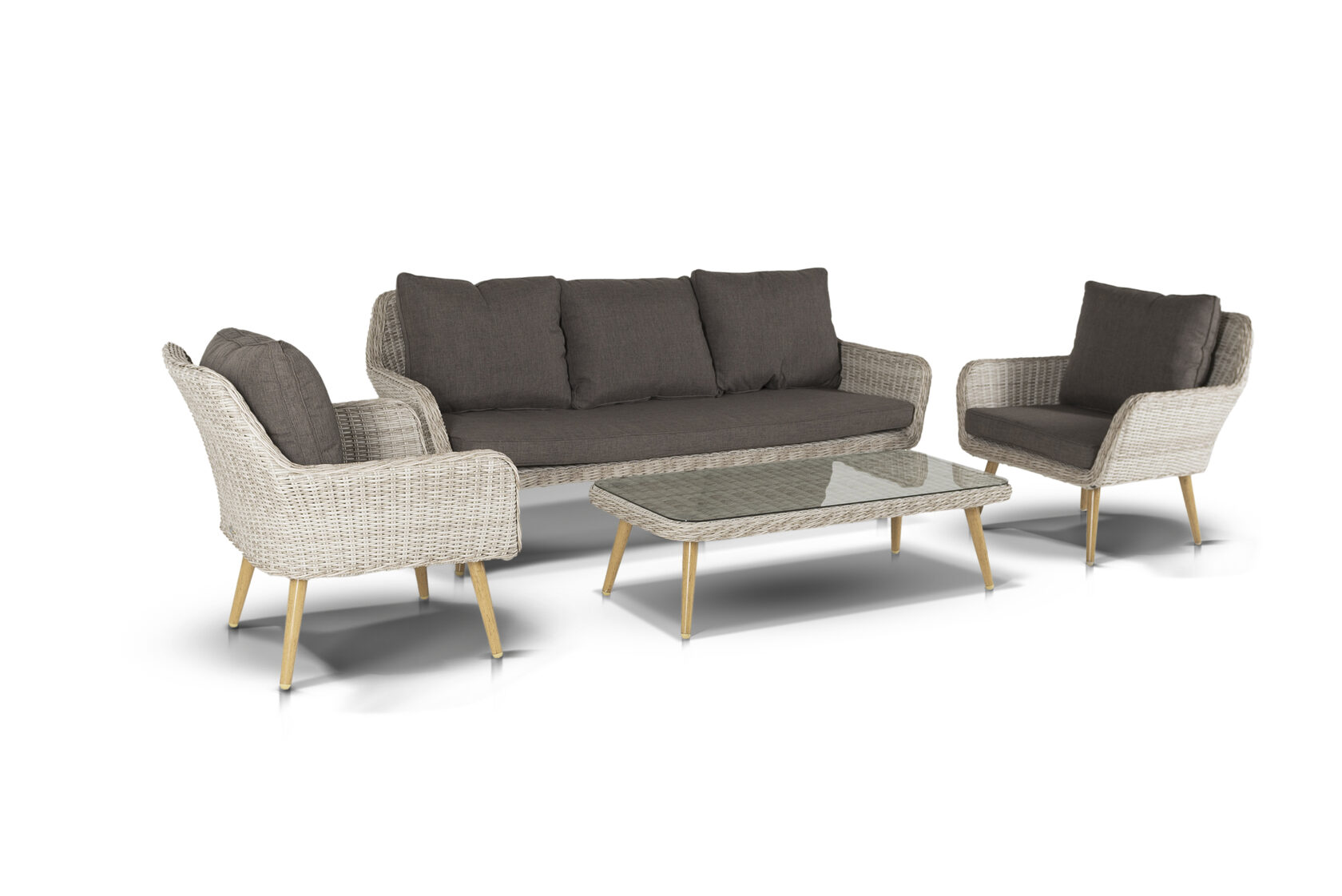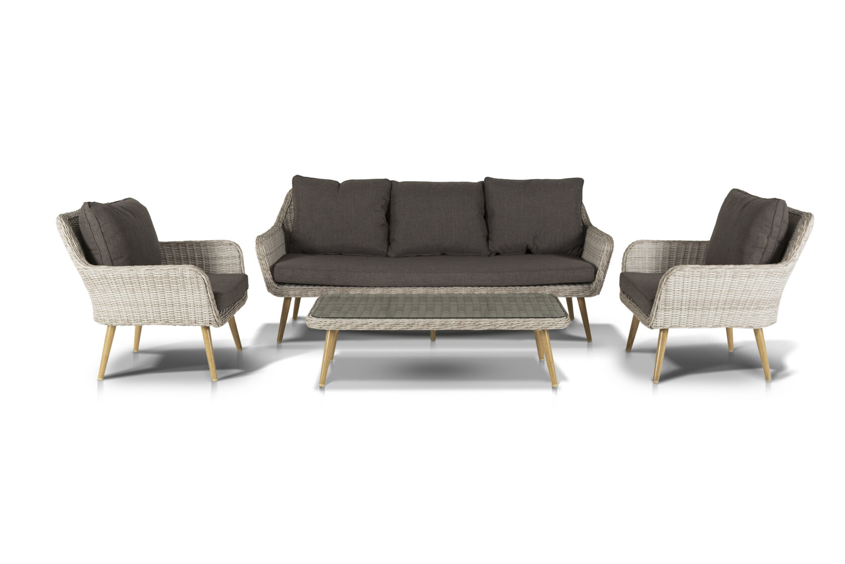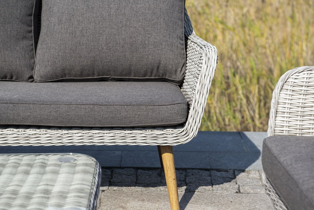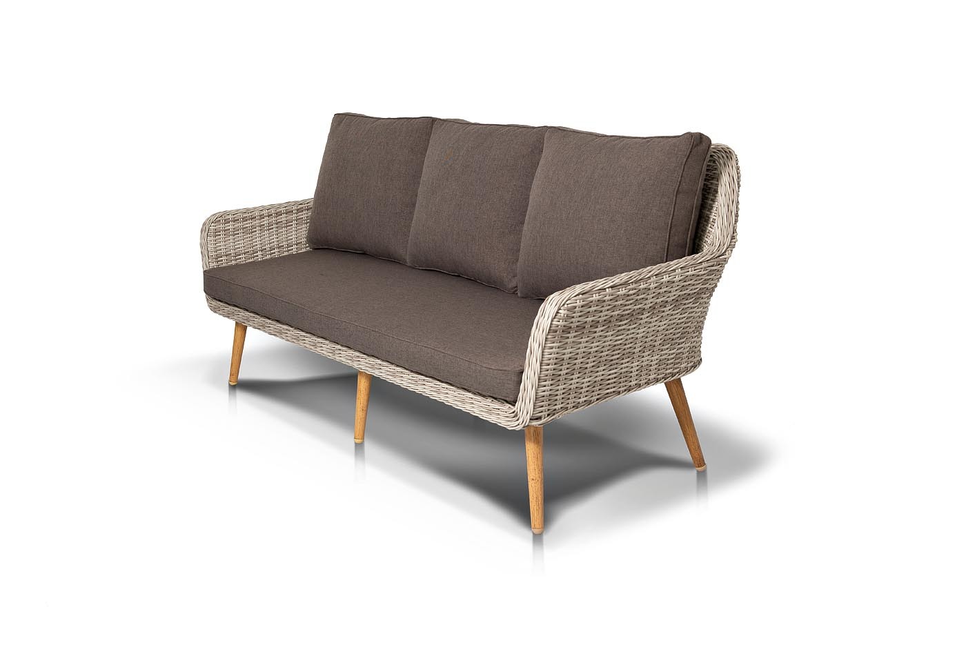 Лаунж-зона «Прованс» – это идеальный вариант оформления зоны отдыха на свежем воздухе. Рассчитана на компанию до 5 персон. Садовый комплект состоит из: - трехместного дивана, размером – 1900×800×770 мм. - двух кресел – 810×800×770 мм. - журнального столика – 1200×580×330 мм. Каркас всей группы выполнен из прочного алюминия, который оплетен круглым искусственным ротангом. Цвет – бежевый. Диван и кресла оснащены подушками со съемными чехлами серо-коричневого цвета. При изготовлении чехлов используется высокопрочный полиэстер, плотность - 230гр/м2 и влагоотталкивающая пропитка. Плетеный столик укомплектован столешницей из закаленного стекла, толщиной – 5 мм. “Прованс” диван из искусственного ротанга трехместный, цвет бежевый 1шт. 1 900Х800Х770, “Прованс” кресло из искусственного ротанга, цвет бежевый 2шт. 810Х800Х770, “Прованс” столик журнальный из ротанга, цвет бежевый 1шт. 1 200Х580Х330,