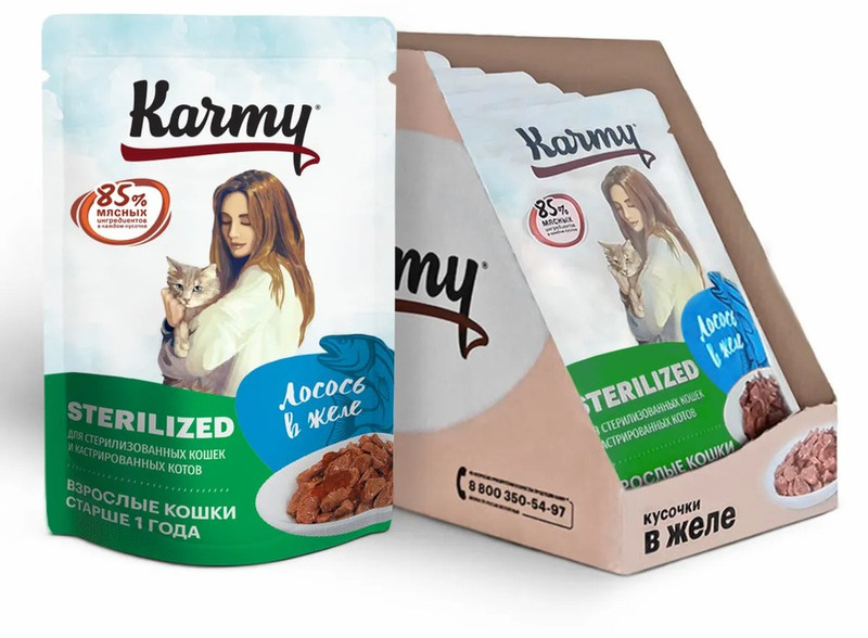 Чтобы купить Karmy STERILIZED Лосось в желе. 80 г. Консервированный полнорационный корм для стерилизованных кошек и кастрированных котов старше 1 года. оптом по цене 67 руб., свяжитесь с поставщиком. Компания поставщик — Karmy (ИП «Корсун В.П.») из города Майкоп (Адыгея).