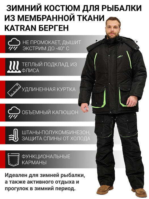В целом, костюм для рыбалки KATRAN Берген получился действительно качественным и надежным. Он создается на Российском производстве с использованием передовых технологий.
