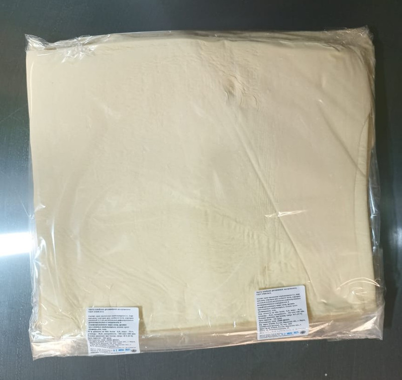 Предлагаем тесто слоёное дрожжевое и бездрожжевое в пластах. Упаковка дрожжевого слоёного теста 5 кг (в упаковке 5 пластов по 1 кг). Упаковка бездрожжевого слоёного теста 4 кг (в упаковке 4 пласта по 1 кг).