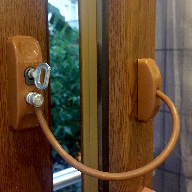 Kidmix ограничитель с тросом и с замком надежно защищает окна, а также от открытия маленькими детьми. В открытом положении поможет вентиляцию в комнате не переживая за ребенка.