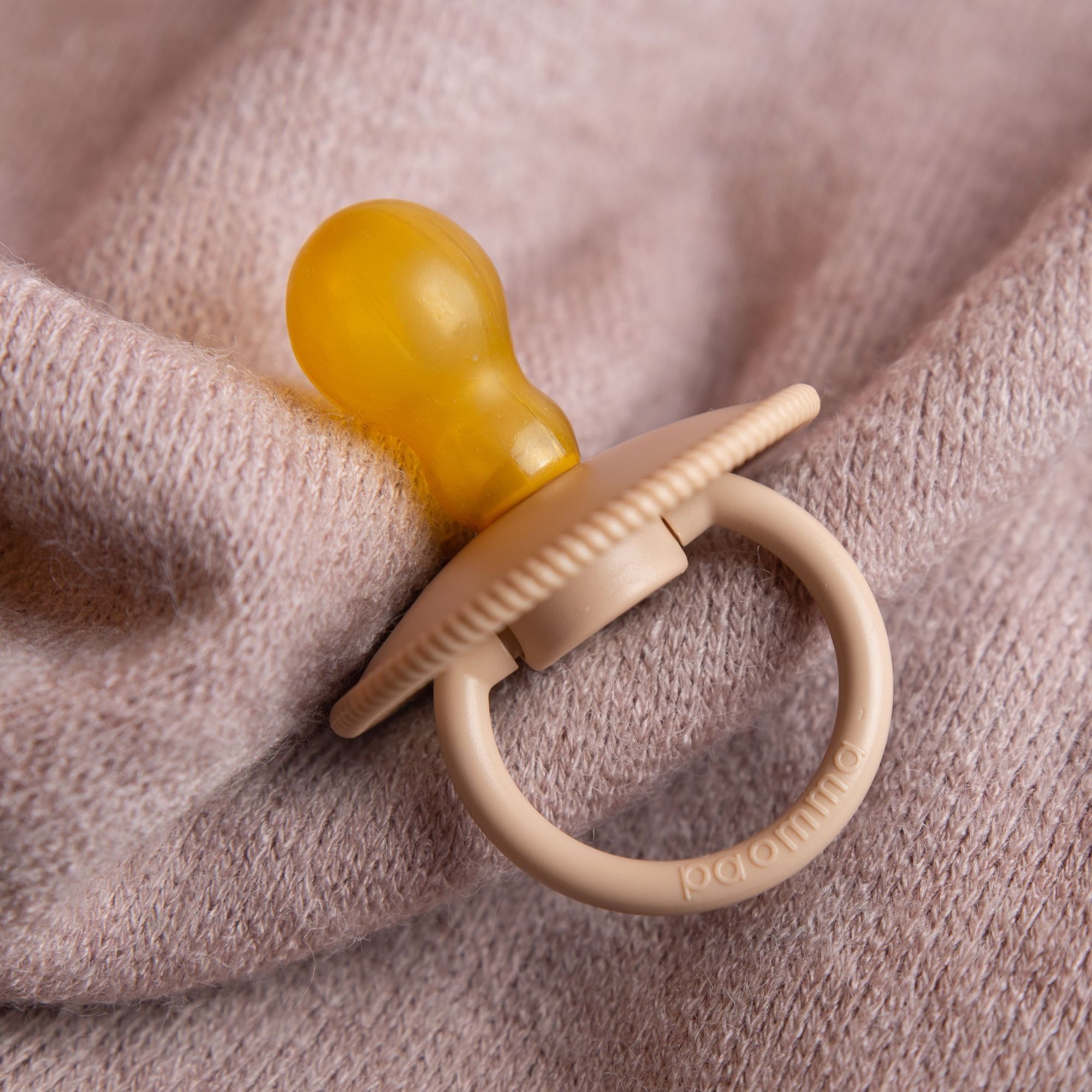 Сосательный рефлекс, удовлетворяемый через тактильный контакт губ, языка и гортани с пустышкой, является врожденным и очень важен для младенца. В разработанном дизайне пустышек Paomma учли все требования для естественного развития малыша: