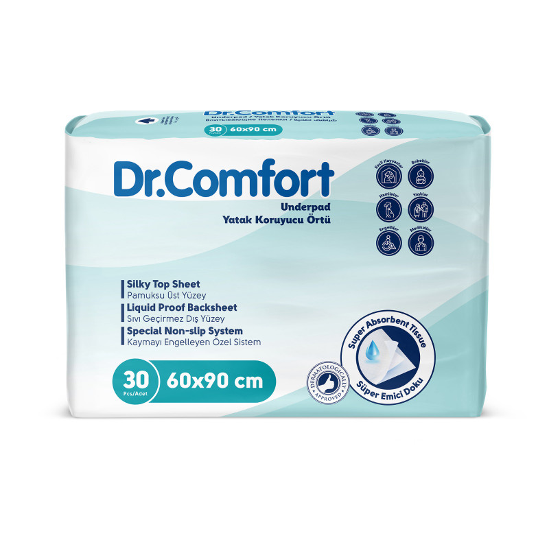 Пеленки Dr. Comfort изготовлены из мягкого материала, по ощущениям напоминающего хлопок, поэтому они очень приятны к телу. Материал, из которого произведены пеленки, не вызывает аллергической реакции, что подтверждают результаты клинических исследований. Пеленки одноразовые впитывающие Dr. Comfort применяются во время диагностических обследований, при выполнении физиотерапевтических и лечебных манипуляций, помогают заботиться о пациентах, перенёсших операцию, подходят для профессионального ухода за лежачими и малоподвижными людьми. Предназначены в качестве средства личной гигиены для дополнительной защиты мебели, постельного белья и других поверхностей от протеканий. Могут быть использованы в качестве одноразовых впитывающих пеленок для детей, подстилки для собак, кошек, и других животных.