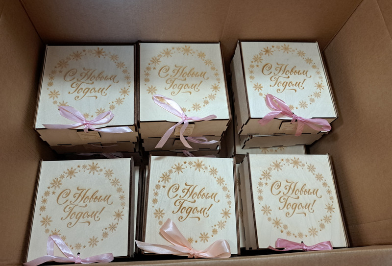 Продаю партию подарочных наборов 171 штука. Набор состоит из деревянной коробки 17x17 см. Внутри крем-мед, свеча из вощины, украшение новогоднее. Подходит для продажи через маркетплейсы. Все упаковано в картонные коробки.