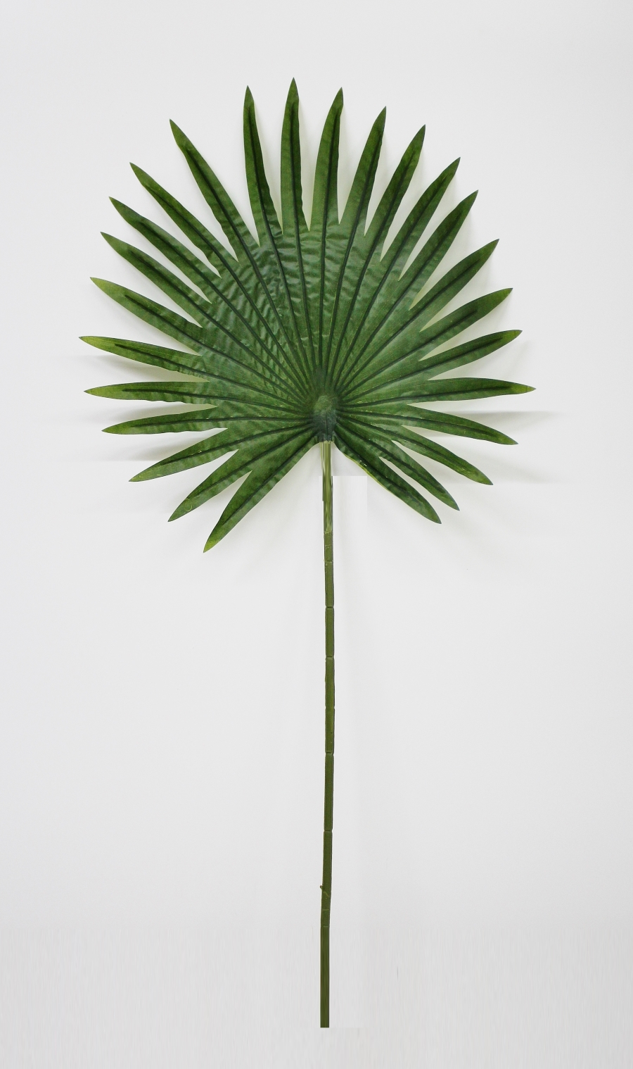 Веерный лист пальмы высотой 90 см. Листья сделаны из высоко качественной специально пропитанной гипоалергенной ткани (полиэстер), хорошо держат форму и не имею запаха. Ножка пластиковая с проволочной основой внутри, что позволяет листу легко гнуться и не ломаться. Не требует дополнительного ухода. Не выгорает на солнце и легко моется. Ширина 48 см.