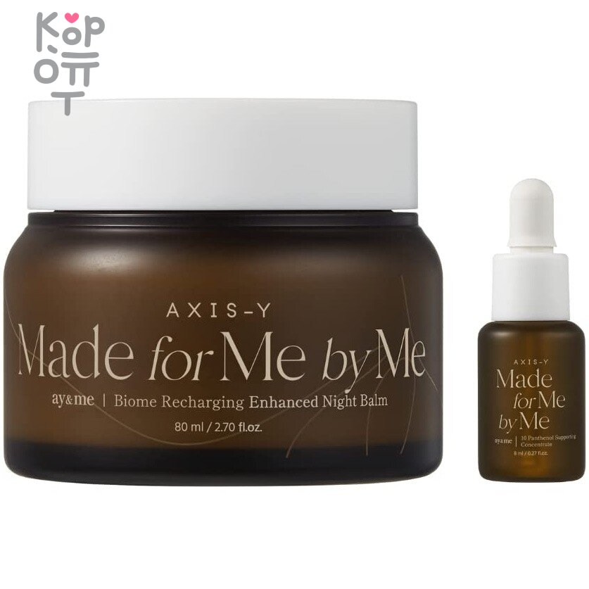 <p>Улучшенный ночной бальзам Biome Recharging 80 мл.</p> <p>10 Поддерживающий концентрат пантенола 8 мл.</p> <p>Специальная биомная смесь<br>Специальная биомная смесь — это уникальная формула, созданная AXIS-Y. Это смесь 5 различных пребиотиков и пробиотиков, объединенных в оптимальных соотношениях для улучшения цвета лица и здоровья кожи. Наша специальная формула включает в себя</p> <p>Лактобактерии Лизат<br>улучшает естественный биом кожи, увеличивая содержание витамина С, что помогает избавиться от прыщей и осветлить цвет лица.</p> <p>Лактококковый ферментный лизат<br>Помогает разгладить цвет лица и тон кожи, а также увлажняет кожу, придавая ей жизненную силу.</p> <p>Фильтрат фермента Saccharomyces<br>Обеспечивает кожу питательными веществами и оживляет клетки кожи, придавая коже обновленное сияние.</p> <p>Бифидо-ферментный фильтрат<br>Помогает удалить загрязнения с кожи и улучшить тон кожи и цвет лица.</p> <p>Лизат бифидофермента<br>Повышает усвоение витаминов и улучшает тон кожи и цвет лица. Мы понимаем важность сильного и здорового кожного барьера, а также важность питания микробиома вашей кожи.</p> <p></p>