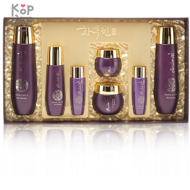 <p>Набор поможет решить многие проблемы, устранит несовершенства, восстановит кожу и не допустит появления шелушений. </p> Экстракт красного женьшеня – интенсивно питает и глубоко увлажняет кожу, препятствует ее обезвоживанию, обновляет клетки, активизирует процессы восстановления, устраняет появившиеся морщины, стимулирует выработку коллагена. <br> Экстракт гамамелиса – прекрасно освежает кожу, повышает ее тонус, лечит угревые высыпания, заживляет существующие повреждения, сужает поры, уменьшает отечность. <br> Гиалуроновая кислота поддерживает оптимальный уровень увлажнения кожи, не допускает ее обезвоживания, борется с морщинами, повышает тонус и быстро заживляет раны. <br> Масло ши великолепно смягчает, увлажняет и восстанавливает кожу, насыщает ее полезными веществами, затягивает трещинки и предотвращает их повторное появление, оберегает от негативных воздействий.<br> <p> Косметические средства в короткие сроки преображают кожу и помогают продлить ее молодость. Они отлично снимают покраснения и боль, укрепляют клетки и повышают иммунные силы, устраняют сухость и останавливают процесс старения. Продукты представлены в стильных флаконах и баночках, которые станут украшением туалетного столика.</p> <p>СПОСОБ ПРИМЕНЕНИЯ</p> <p>Очистить кожу, нанести тонер ладонями. Затем нанести несколько капель эмульсии и эссенции, крем для глаз. Завершить уход кремом.</p> <p>Объем: тонер 135 мл., эссенция 50 мл., эмульсия 135 мл., крем для век 30 мл., крем для лица 30мл.</p> <p></p>