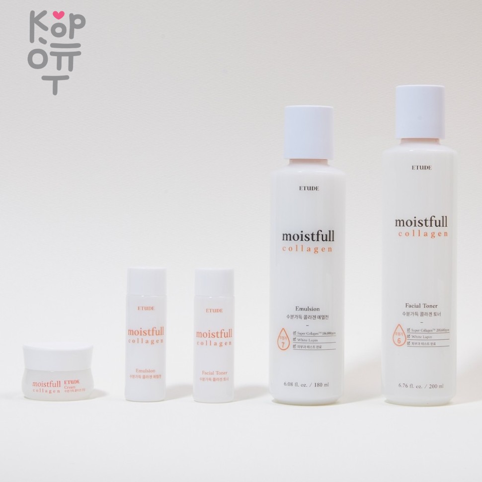 <p>Набор включает: 1) Moistfull Collagen Cream, 10 мл — крем для лица, </p> <p>2) Moistfull Collagen Essence, 15 мл — эссенция (сыворотка), </p> <p>3) Moistfull Collagen Facial Toner, 20 мл — тоник, </p> <p>4) Moistfull Collagen Emulsion, 20 мл — эмульсия. </p> <p>Последовательность нанесения: После умывания лицо протереть ватным диском смоченным тоником. Затем нанести сыворотку, эмульсию и, завершающий этап, крем для лица.</p> <p>Серия Etude House Moistfull Collagen содержит только натуральный морской коллаген. Не содержит коллаген, полученный от наземных животных или из синтетических источников</p> <p><br></p>