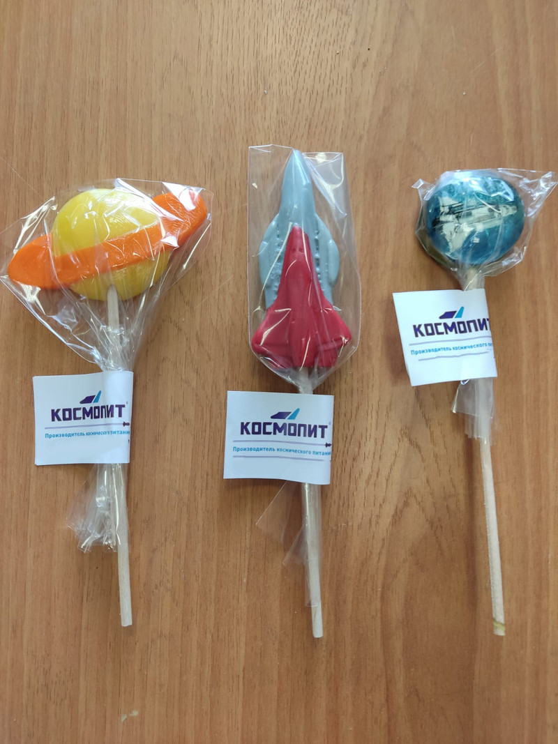 3) ‘Леденцы “Весь космос в леденце” кол-во в коробке — 80 шт. (1⁄2 сферы, троп. фрукты, арбуз)