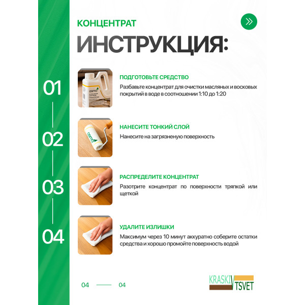 OSMO Intensiv-Reiniger подходит для удаления различных загрязнений, включая жир, грязь, следы от маркеров и другие пятна. Для применения этого средства необходимо: